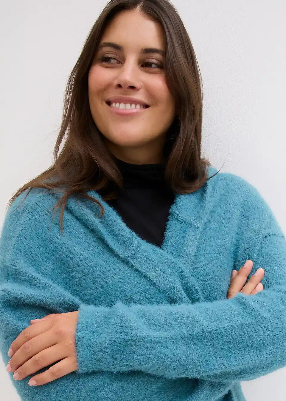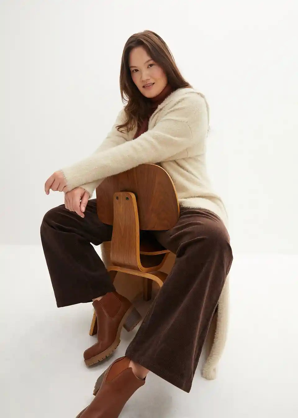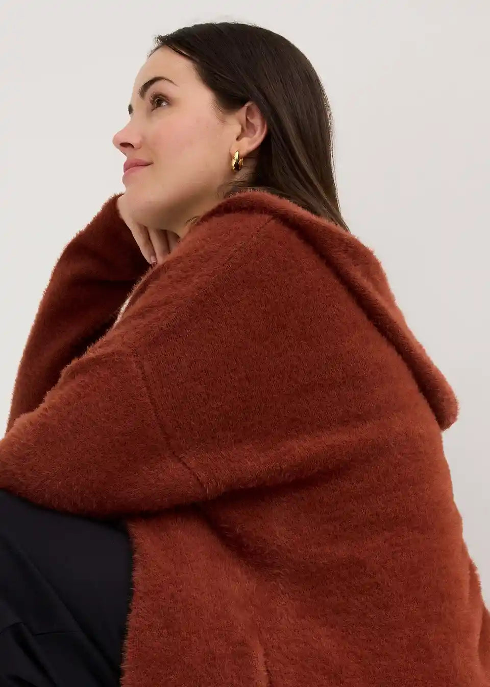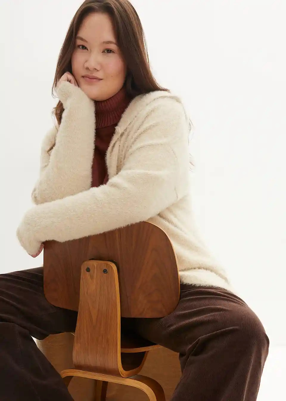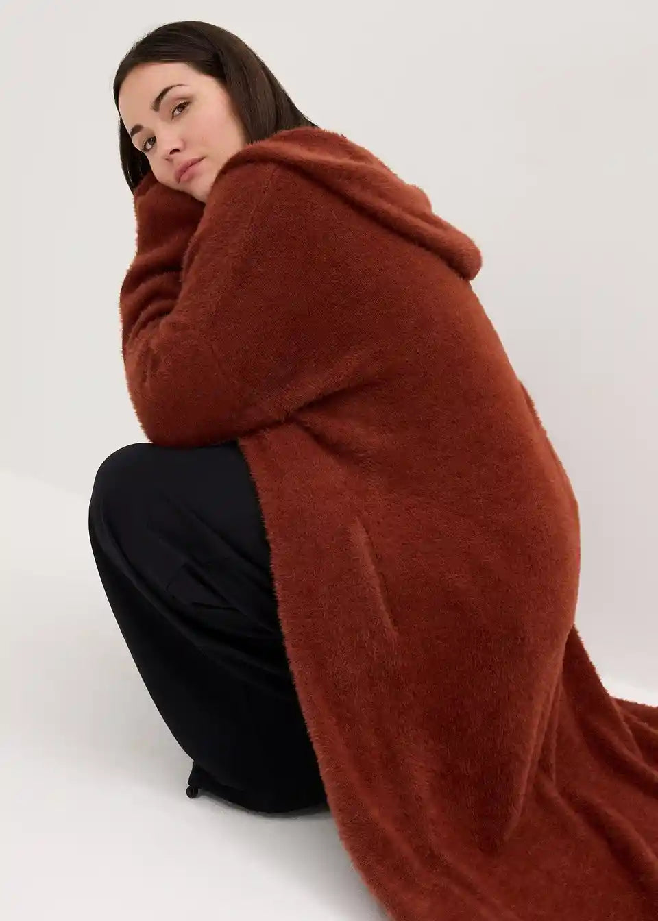 Dugi pleteni kaput s kapuljačom od mješavine viskoze