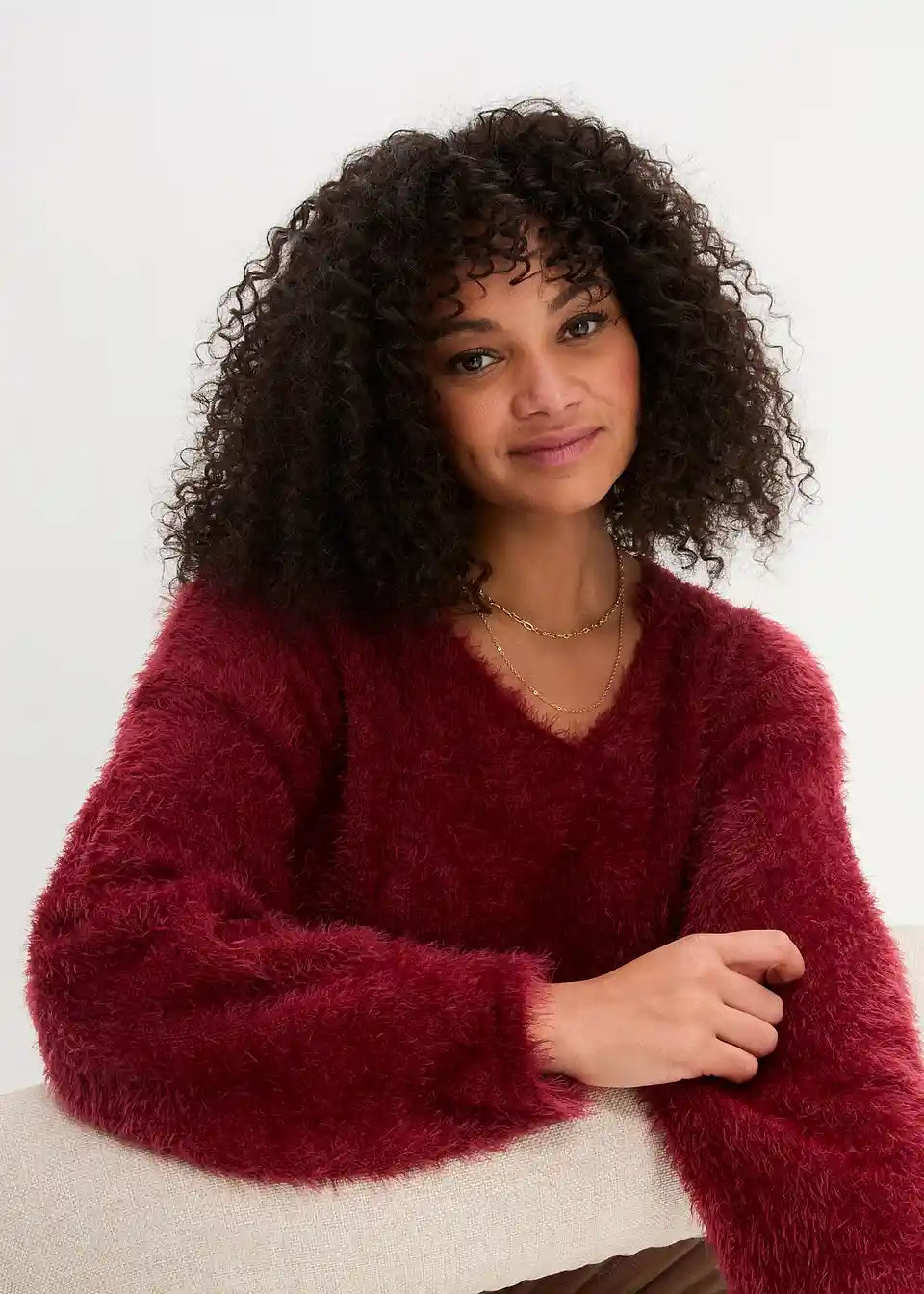 mekani pulover s V-izrezom