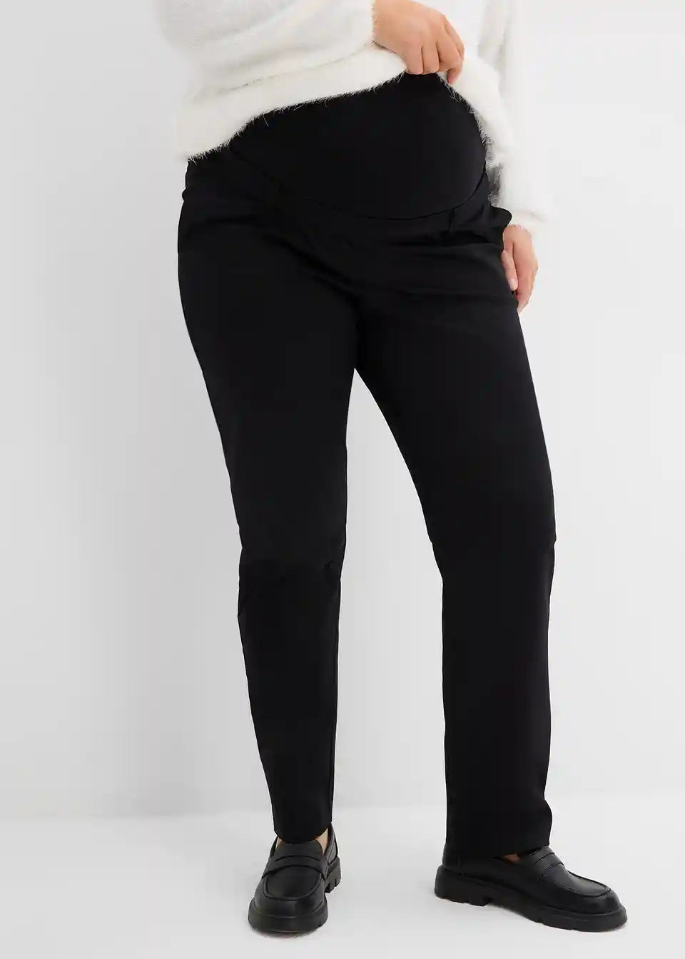 Trudničke hlače od rastezljivog tkanog materijala imaju dva bočna džepa sprijeda i prolaze za remen. Široki, pričvršćeni pamučni dres pojas osigurava optimalno prianjanje na trbuhu. Podesiva gumica u pojasu omogućuje regulaciju širine, tako da se hlače mogu prilagoditi svakom mjesecu trudnoće.