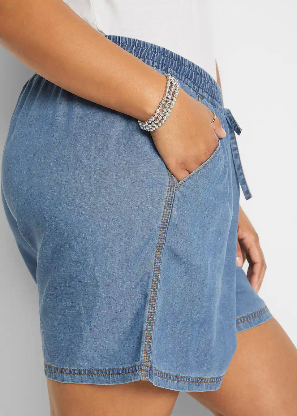 Kratke hlače od laganog denima s lanom i komotnim strukom