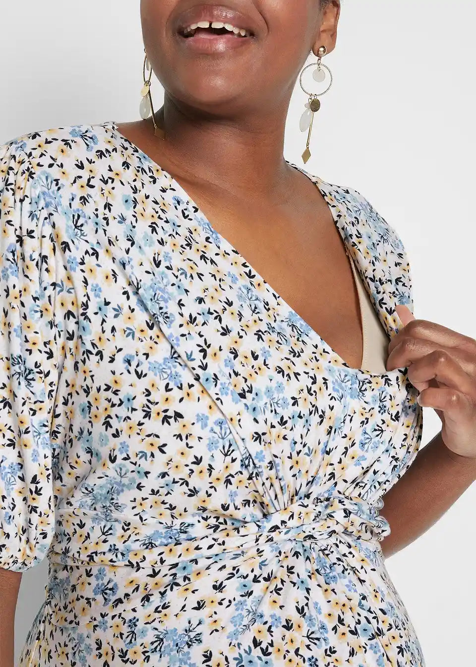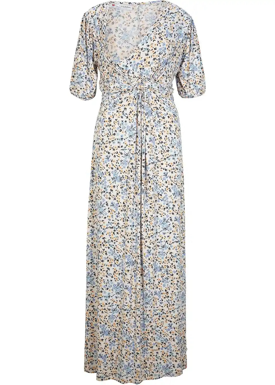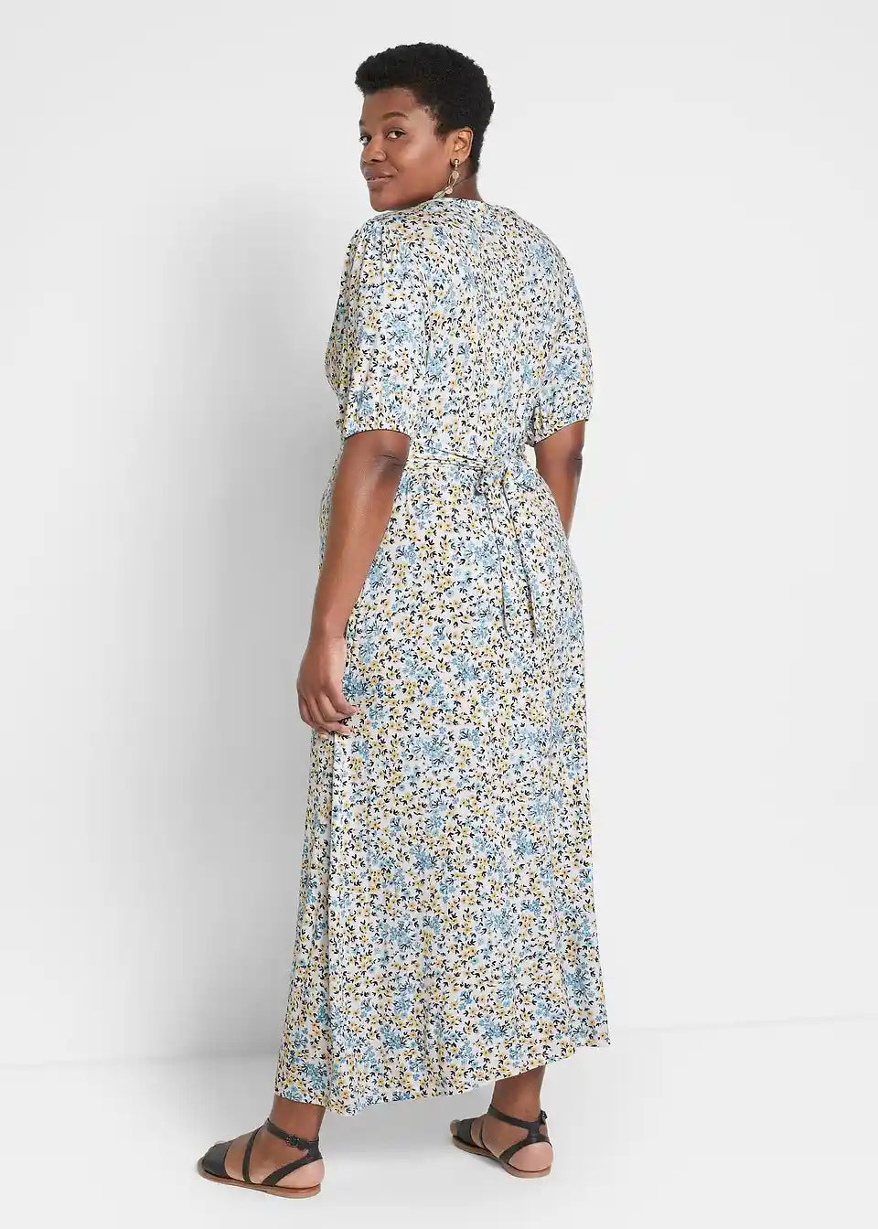 Ova duga haljina prikladna je za svaki mjesec trudnoće, a zahvaljujući omotanoj optici na izrezu, može se koristiti i kao haljina za dojenje. Posebno mekan i udoban materijal od održive viskoze.