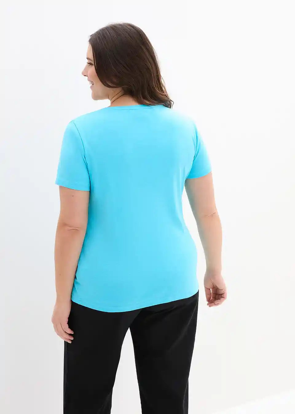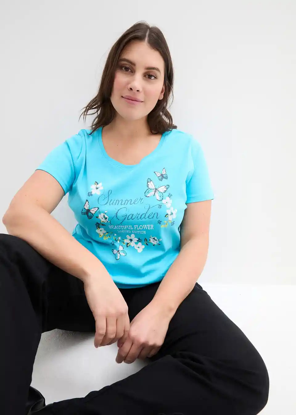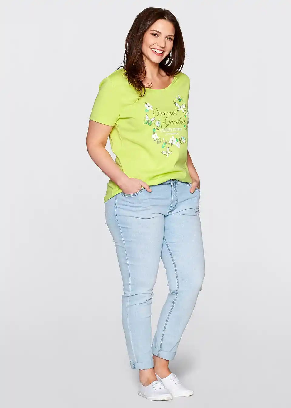 Atraktivan motiv krasi ovu lijepu majicu kratkih rukava iz kolekcije bpc. Model s okruglim izrezom, dostupan u lijepim bojama, blago je strukiran. Klasični traperice i chino hlače nude privlačnu kombinaciju s ovom majicom kratkih rukava, kao i lagano laneno odijelo. Također, suknje midi dužine posebno ističu ovu lijepu majicu.