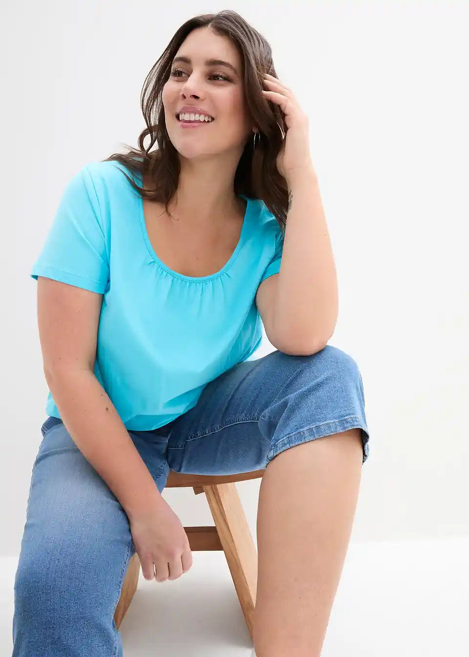 Prekrasna majica s elastičnim gumiranim rubom na donjem dijelu i okruglim izrezom