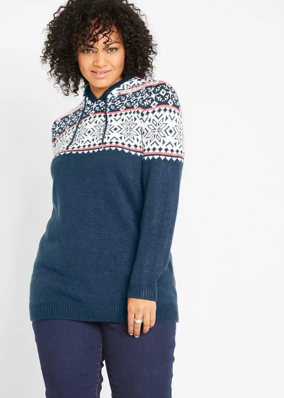 Udobna pletena pulover, s kapuljačom