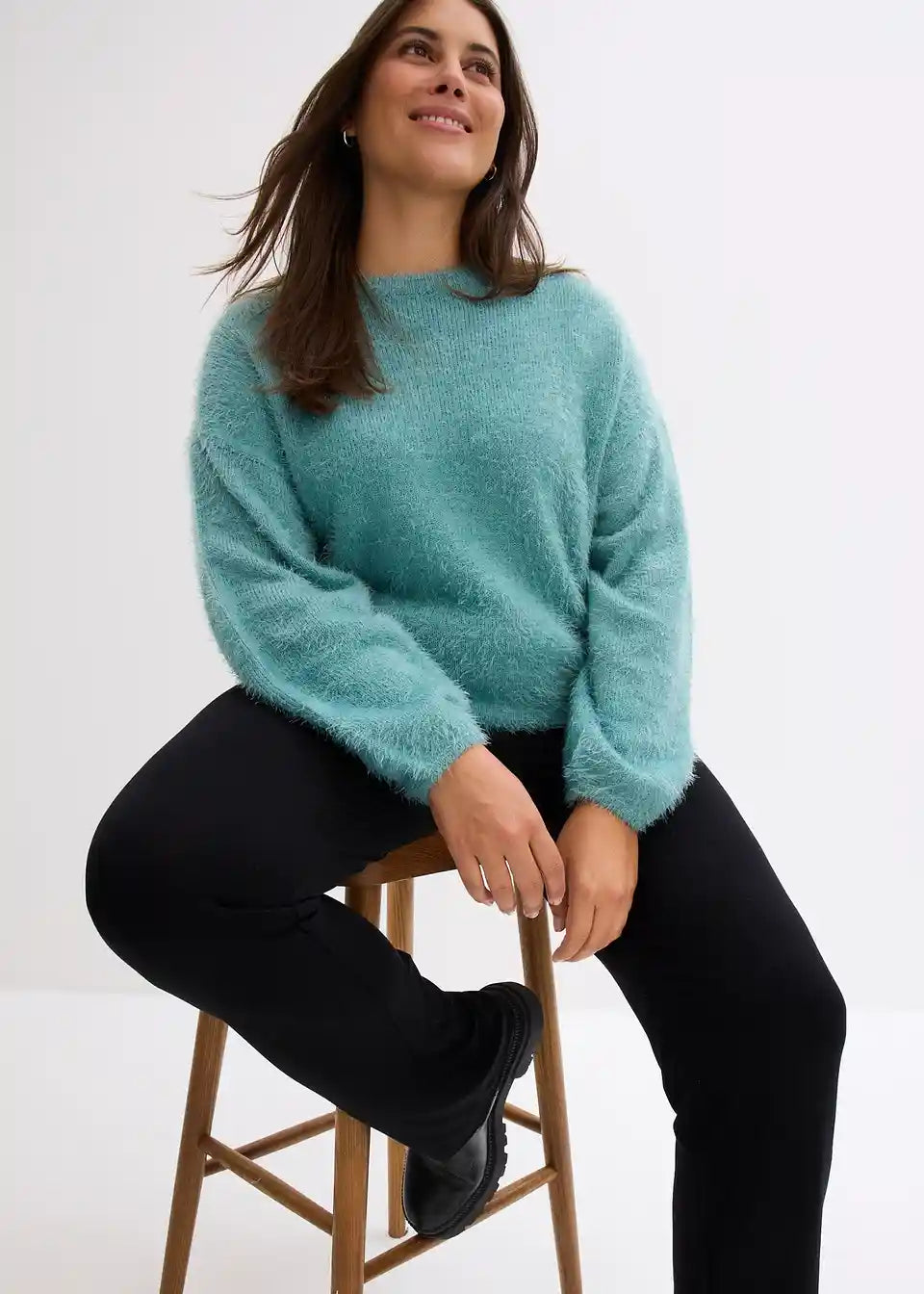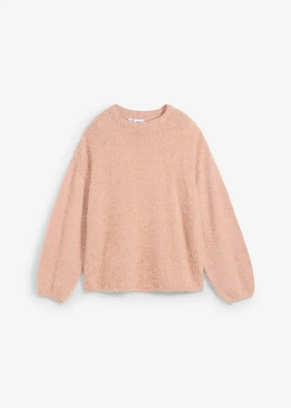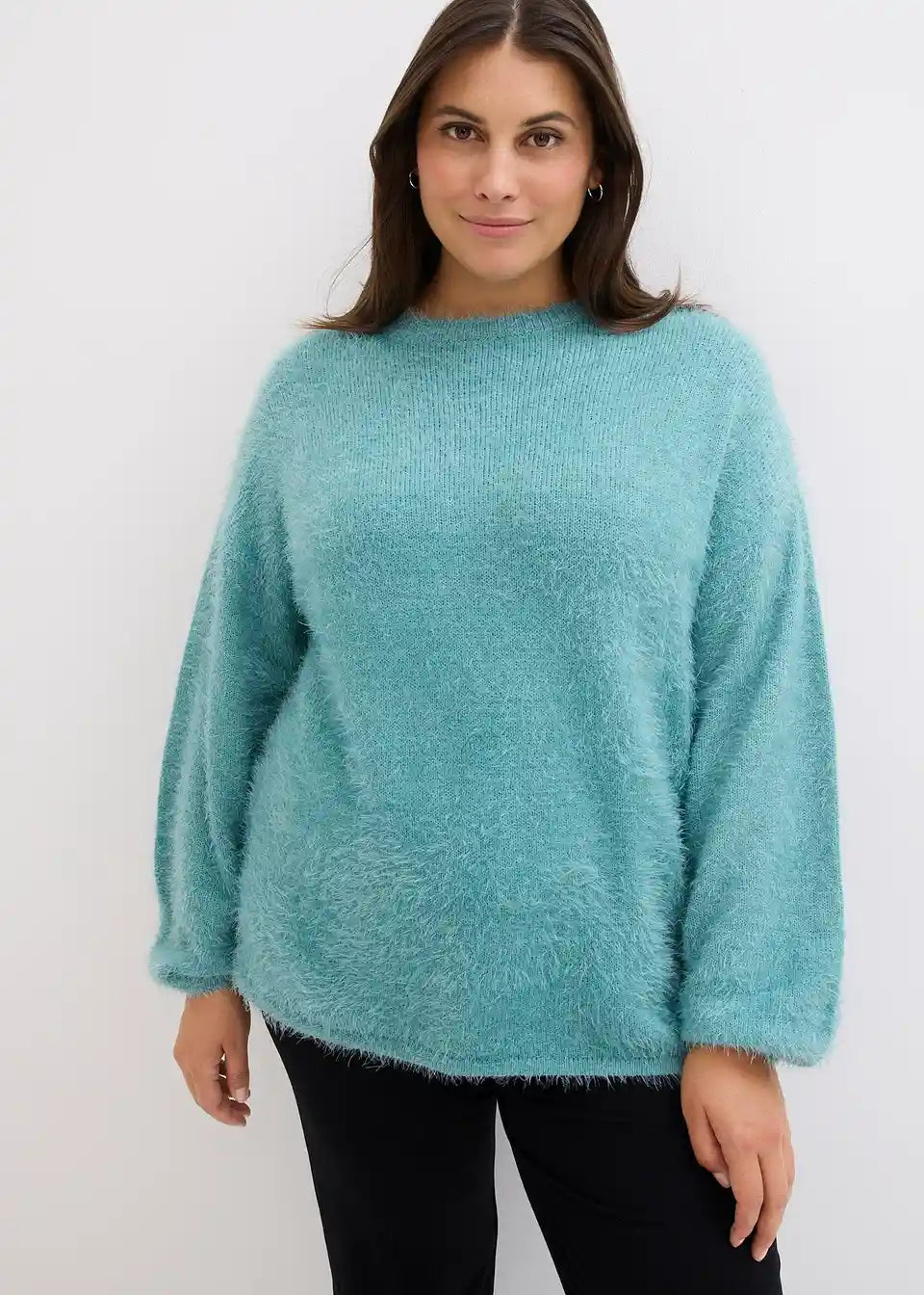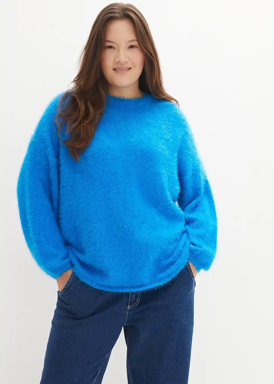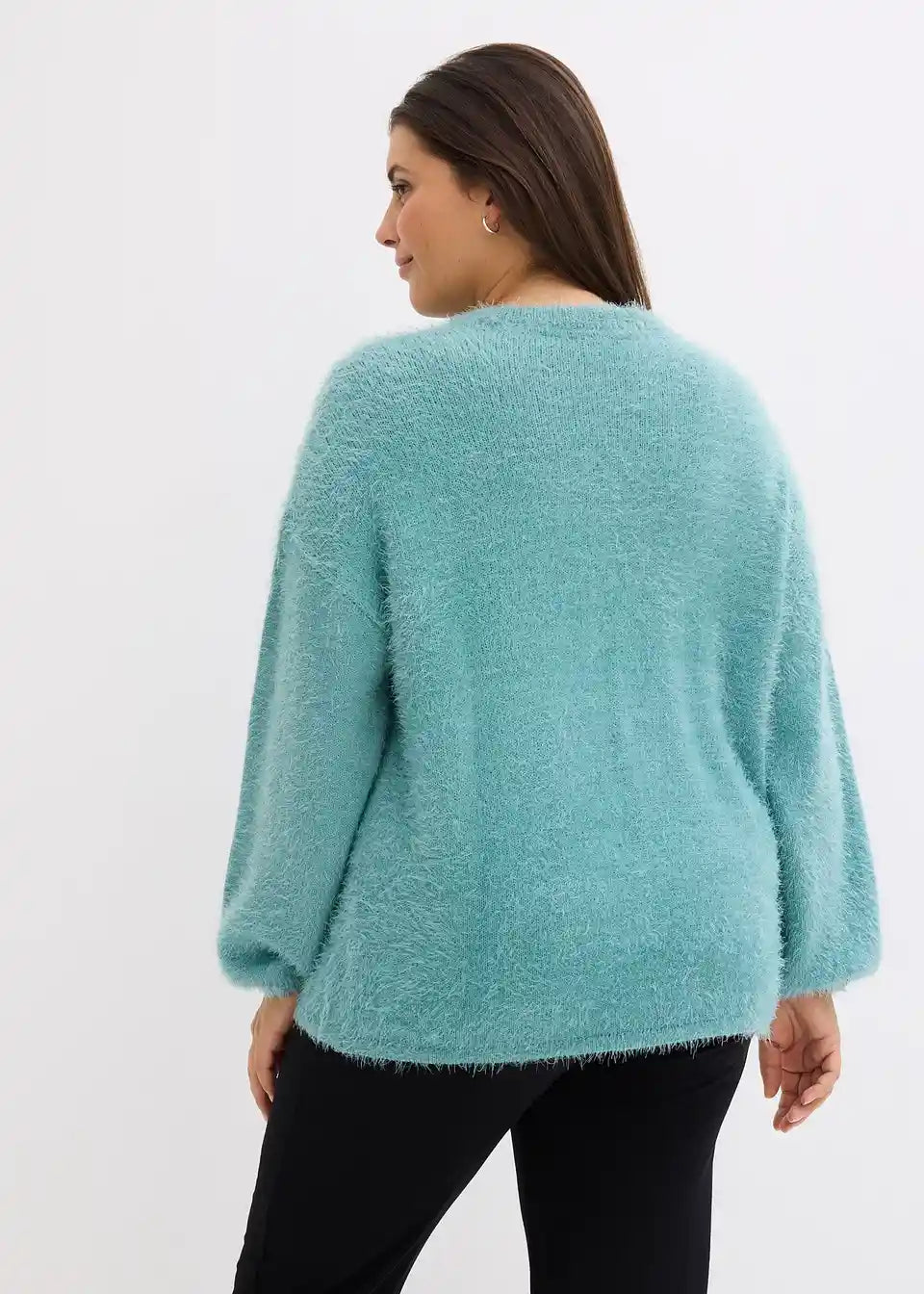 Udoban pleteni pulover od pahuljaste perjaste pređe
