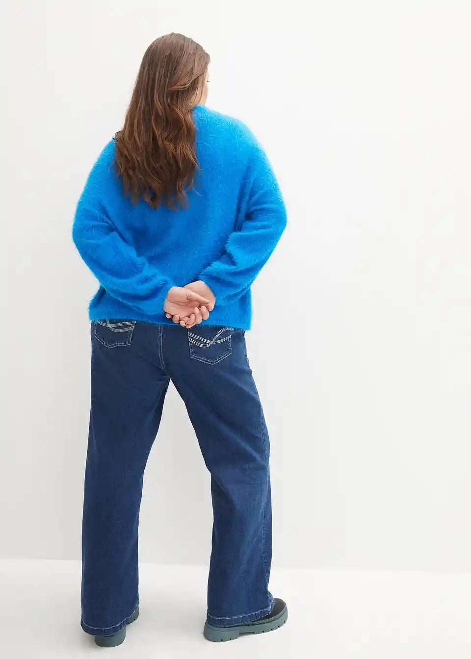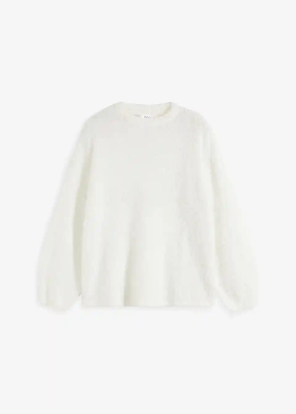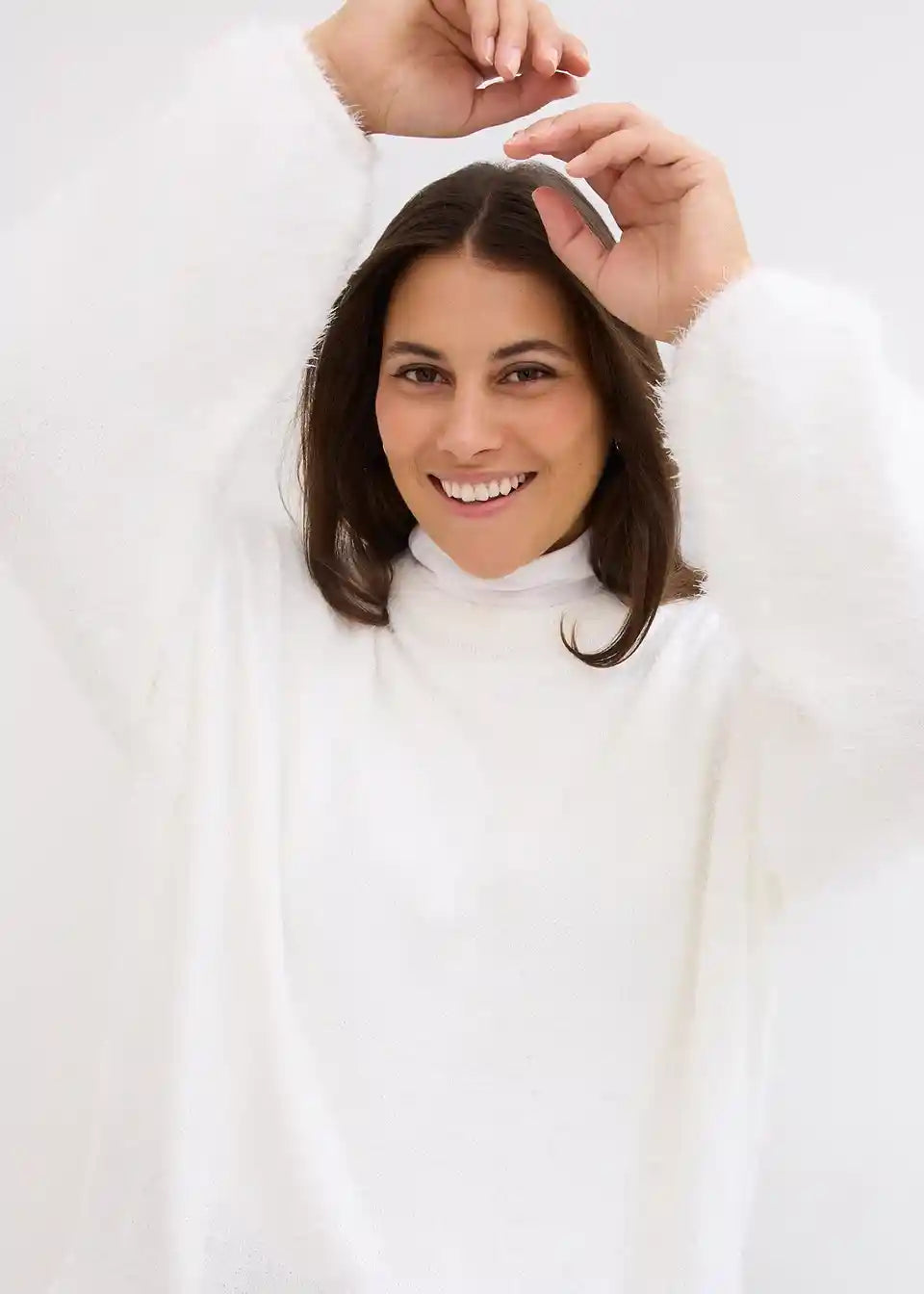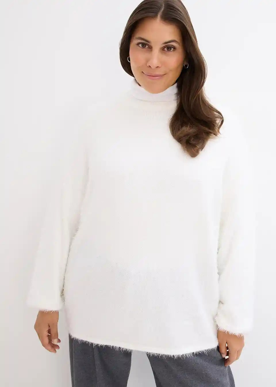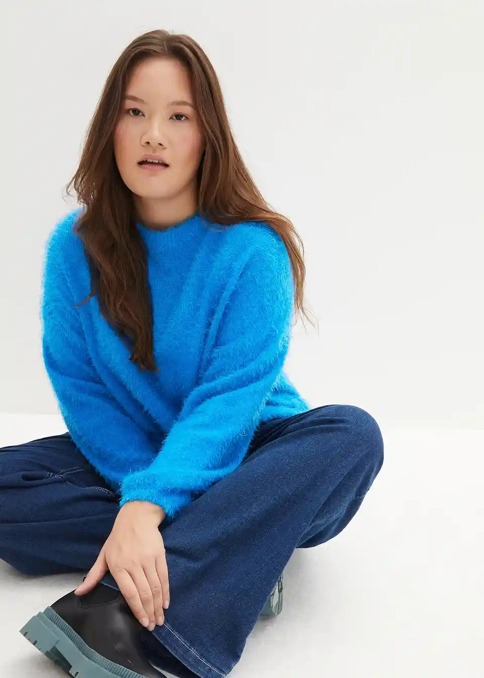 Udoban pleteni pulover od pahuljaste perjaste pređe