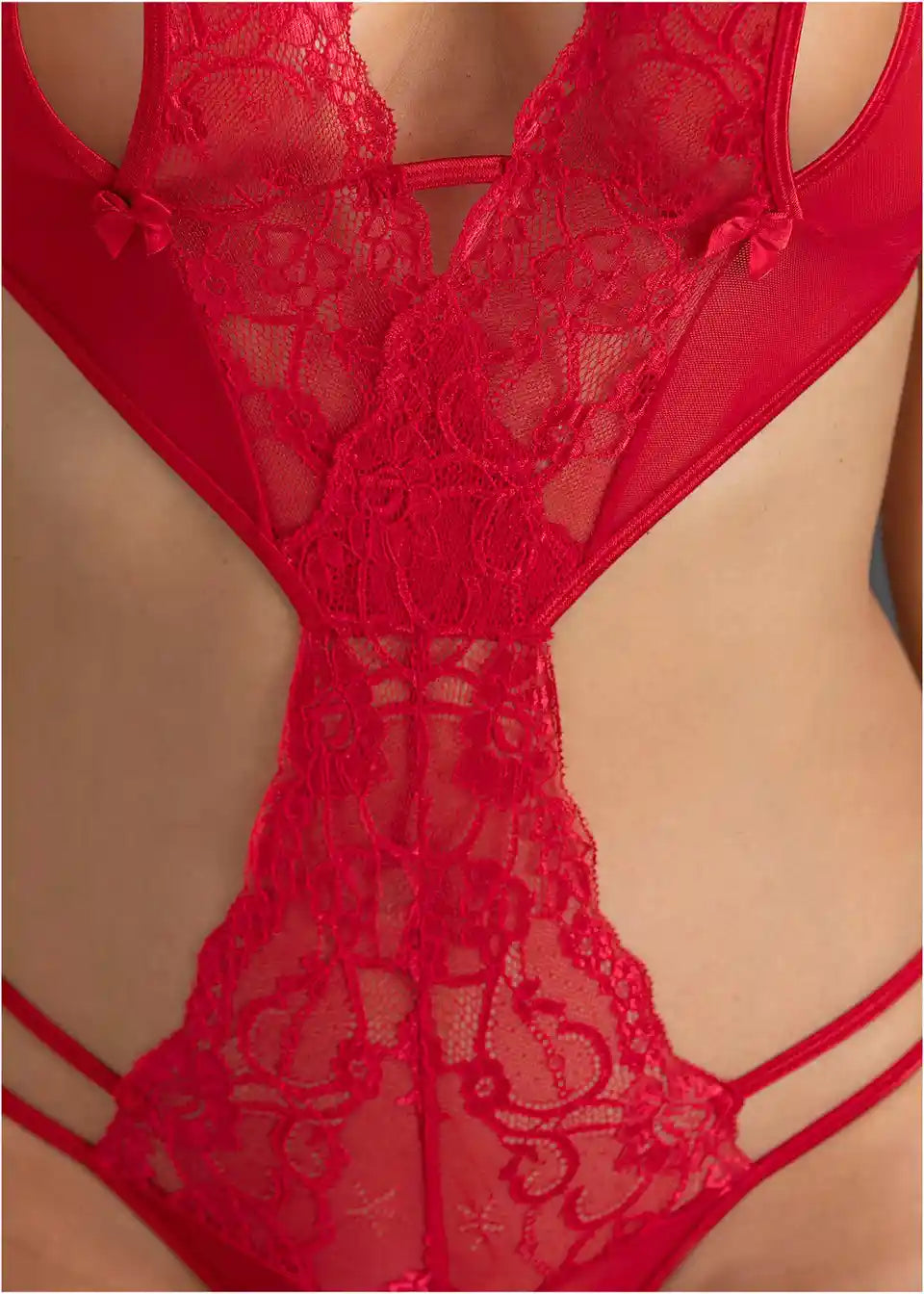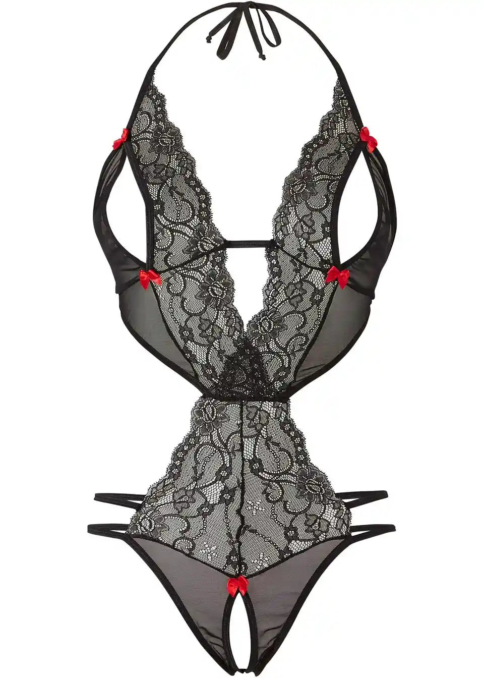Senzualni stringbody s čipkanim umetcima i otvorima na košaricama i u preponama
