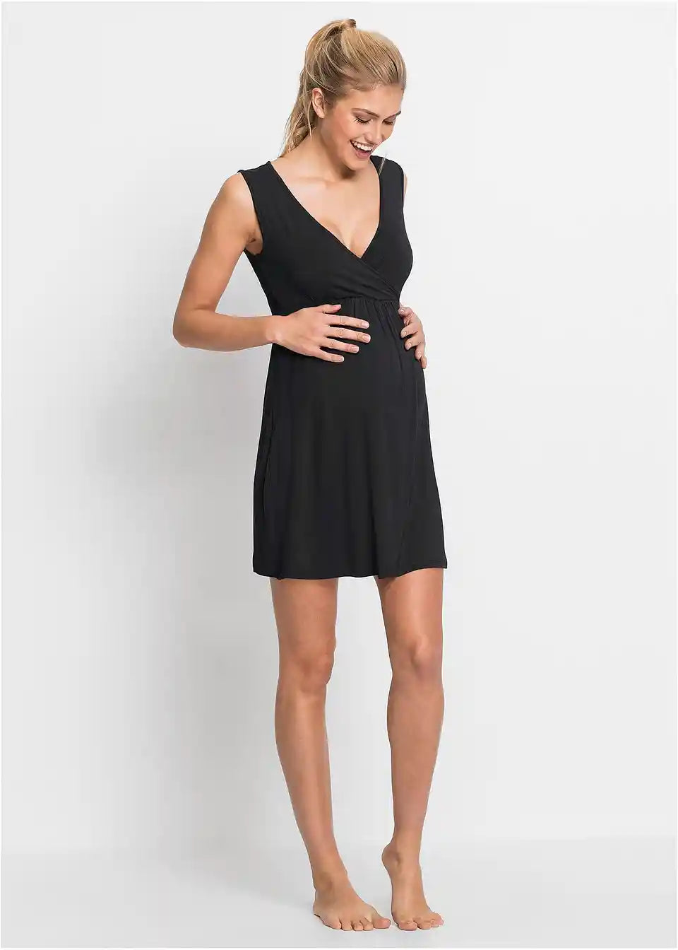 Ova spavaćica do koljena iz kolekcije Nice Size odličan je basic za trudnoću i razdoblje dojenja. Moderni noćni ogrtač bez rukava oduševljava prije svega svojom mekom, koži ugodnom tkaninom i udobnim krojem. Praktičan izrez može se za dojenje jednostavno preklopiti u stranu. Molimo naručite u svojoj uobičajenoj konfekcijskoj veličini.