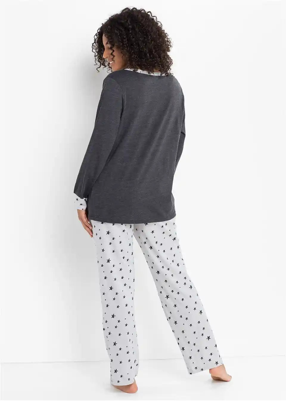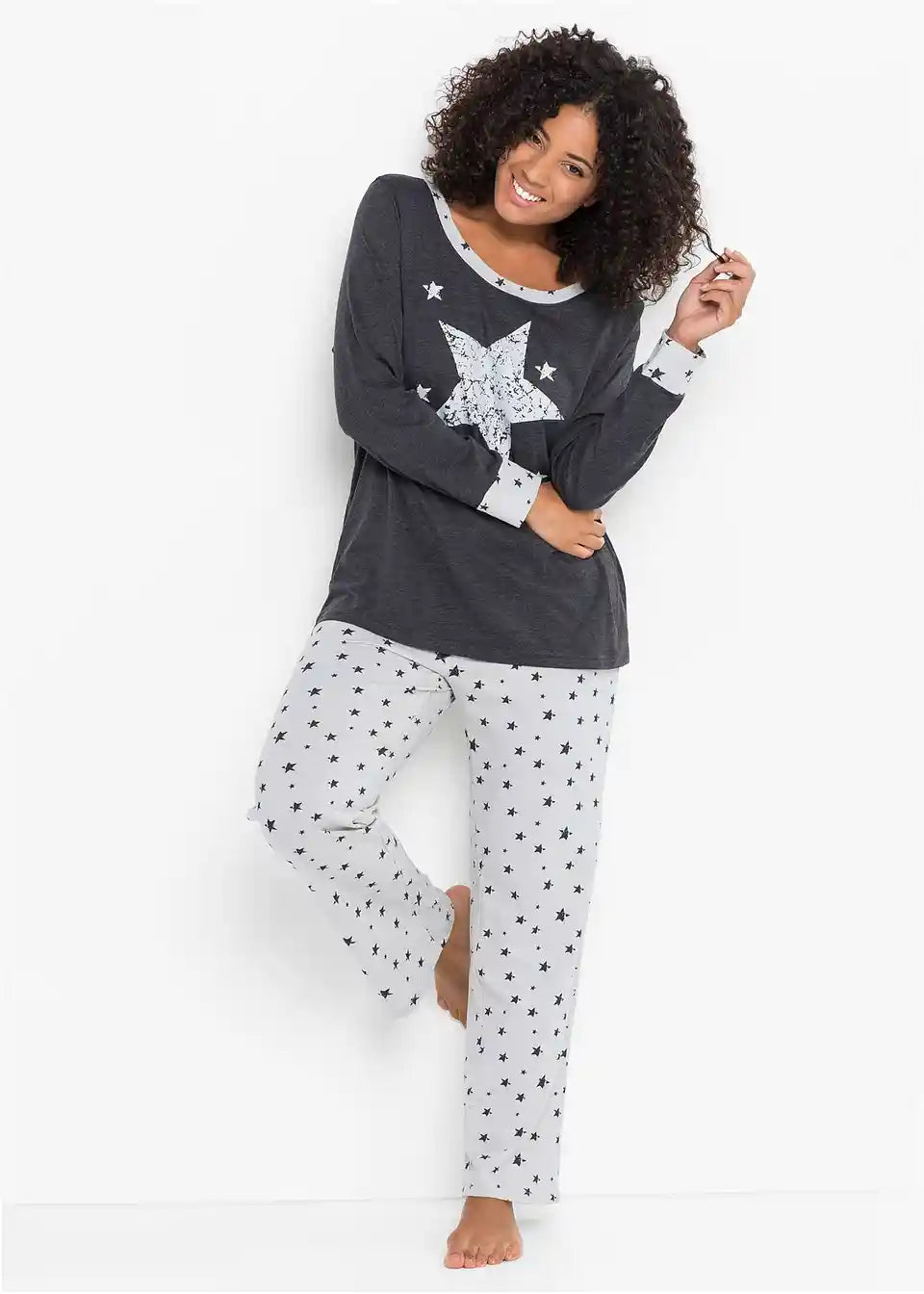Gotovo prelijepa da bi bila samo za spavanje, ova moderna pidžama marke bpc. Udobna pidžama ima gornji dio dugih rukava s prostranim okruglim izrezom. Hlače impresioniraju elastičnim pojasom u struku. Majica je sprijeda ukrašena velikim printom, a hlače odgovarajućim printom po cijeloj površini.