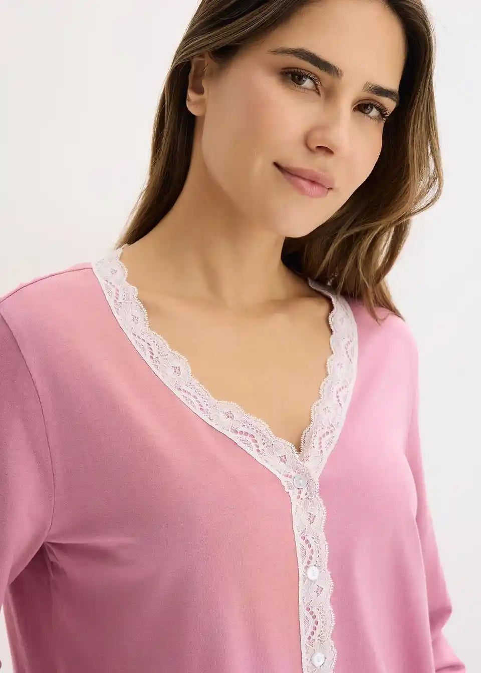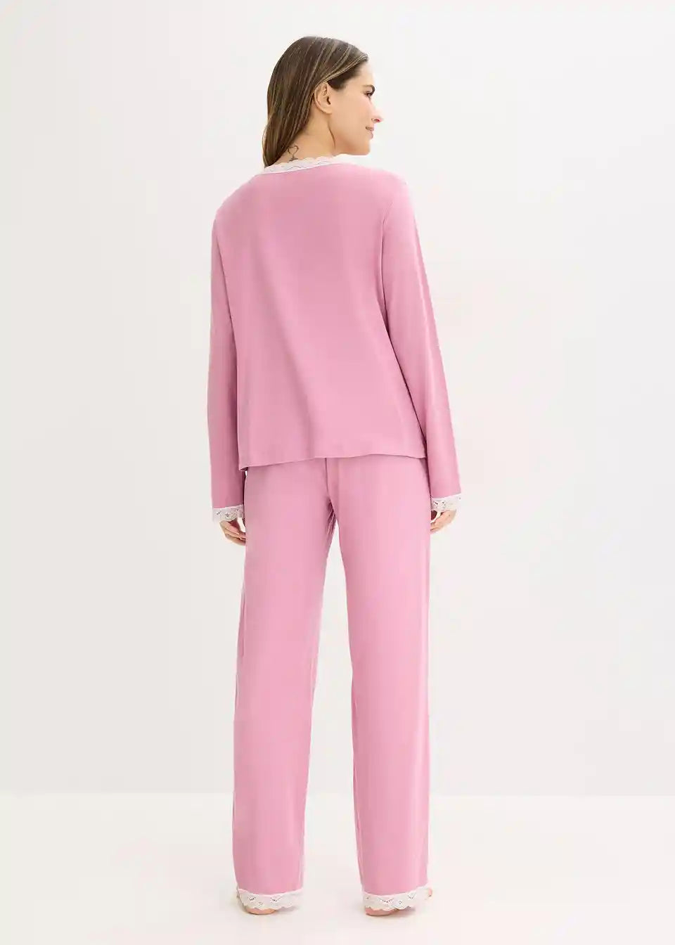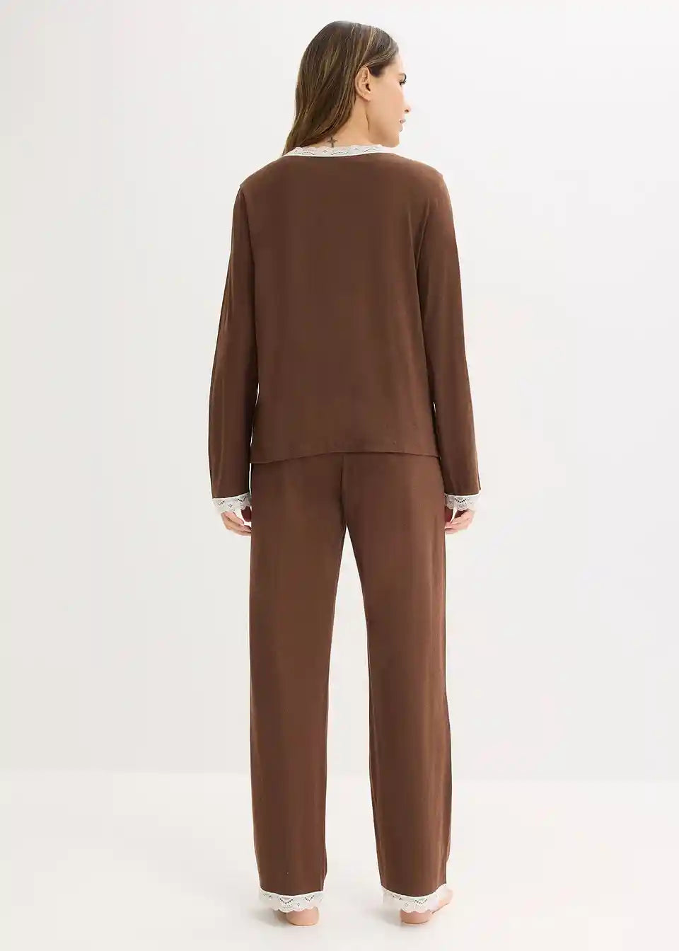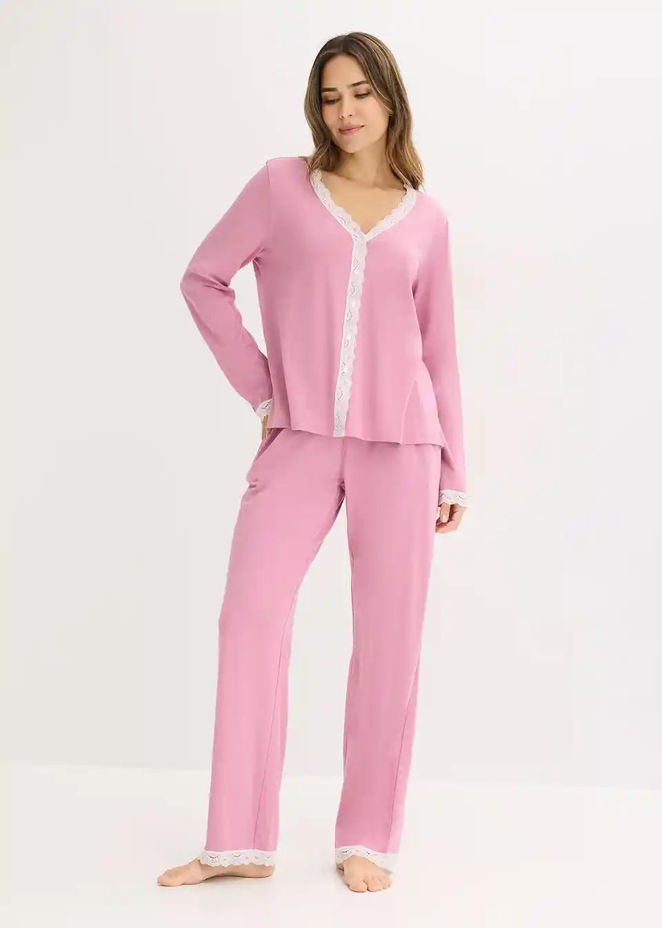 Ženstvena pidžama s posebno lijepim čipkastim umecima te džepovima na hlačama