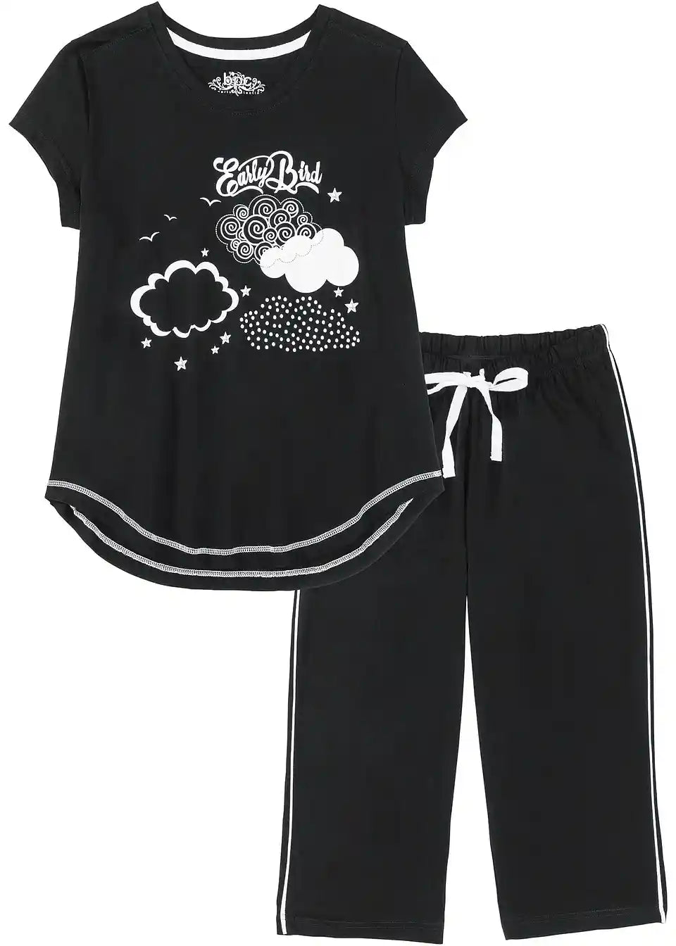 Moderna Capri pidžama oduševljava svojom ugodno mekom pamukom. Kontrastni šavovi na jako zaobljenom rubu kao i pruge na bočnom šavu hlača osiguravaju sportski dizajn. Privlačan print na prednjoj strani majice zaokružuje izgled pidžame.