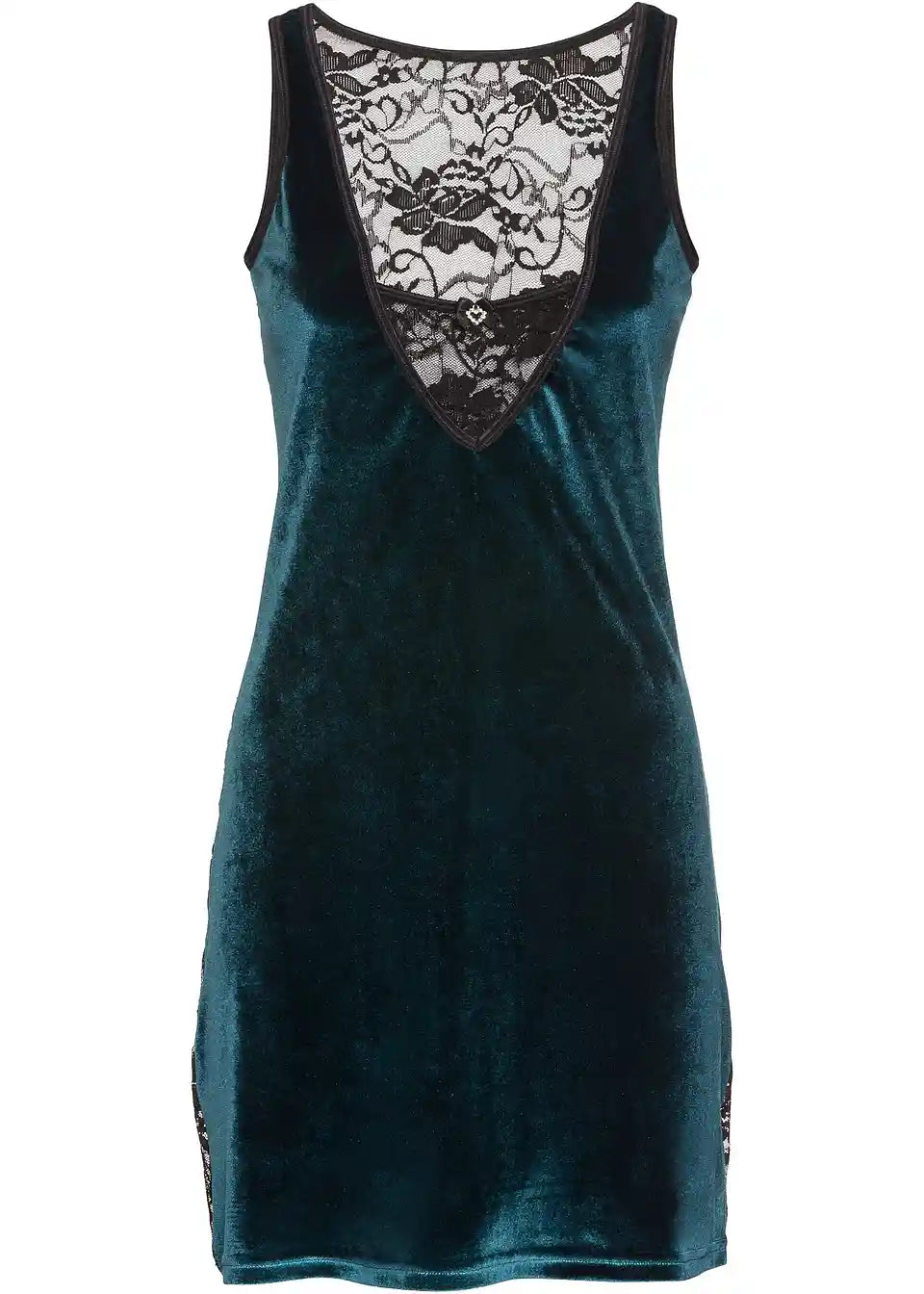 Seksi glamur! Smaragdnozelena haljina sprijeda od baršuna, a straga od čipke, pravi je mamac za poglede! Prozirna čipka na stražnjoj strani i umetci na dubokom V-izrezu ističu vaše obline i zavrtjet će glavu vašem partneru. Mekani baršun u modernoj smaragdnozelenoj nježno prianja uz tijelo i pruža visoku udobnost nošenja. U kombinaciji s crnim visokim petama, outfit je savršen.
