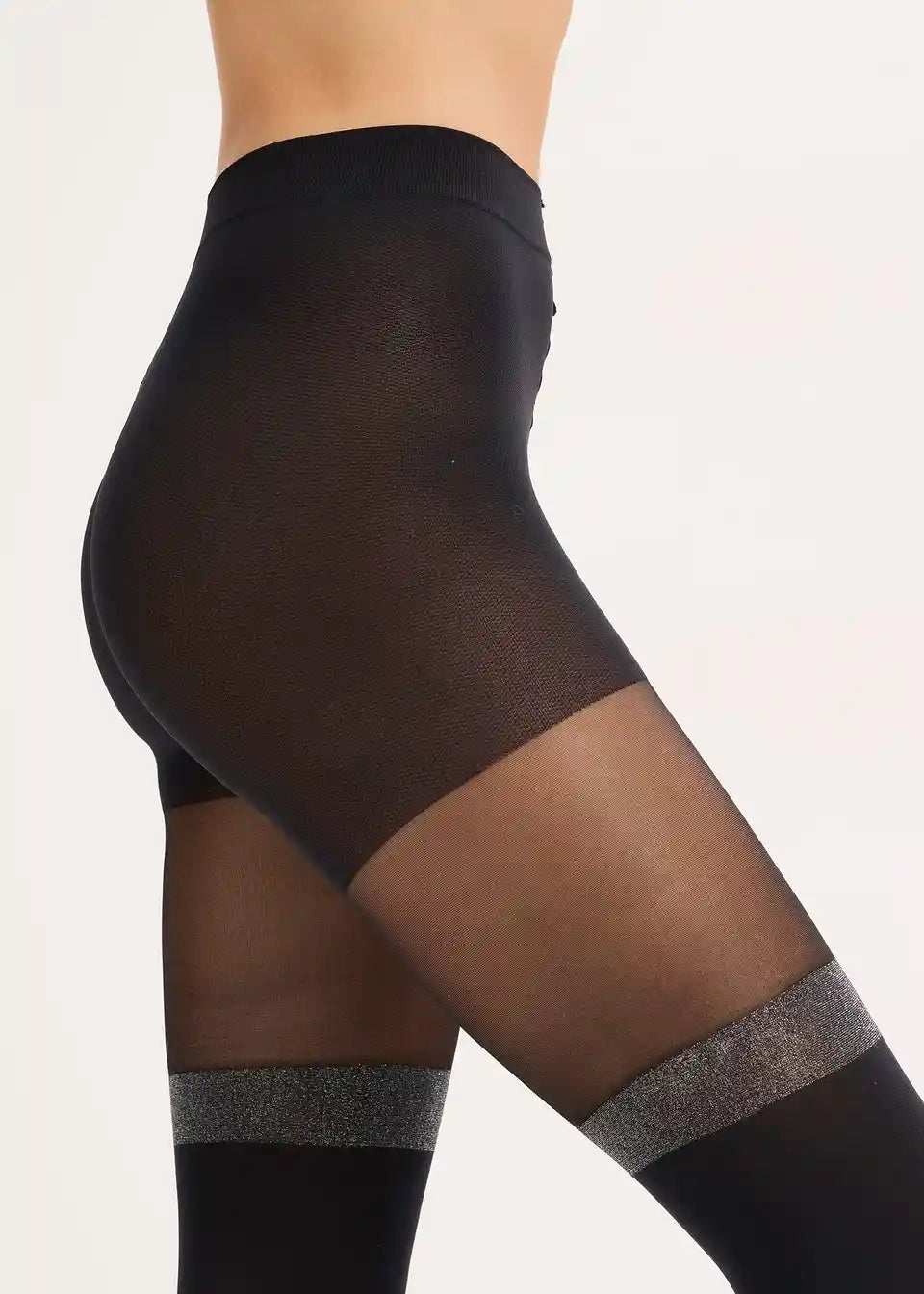 Hulahupke u izgledu čarapa preko koljena 70 DEN sa sjajnim rubom i recikliranim poliamidom