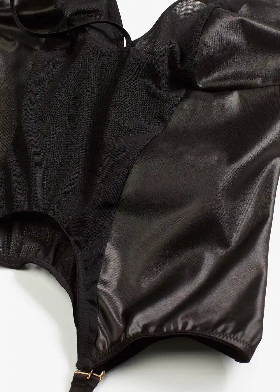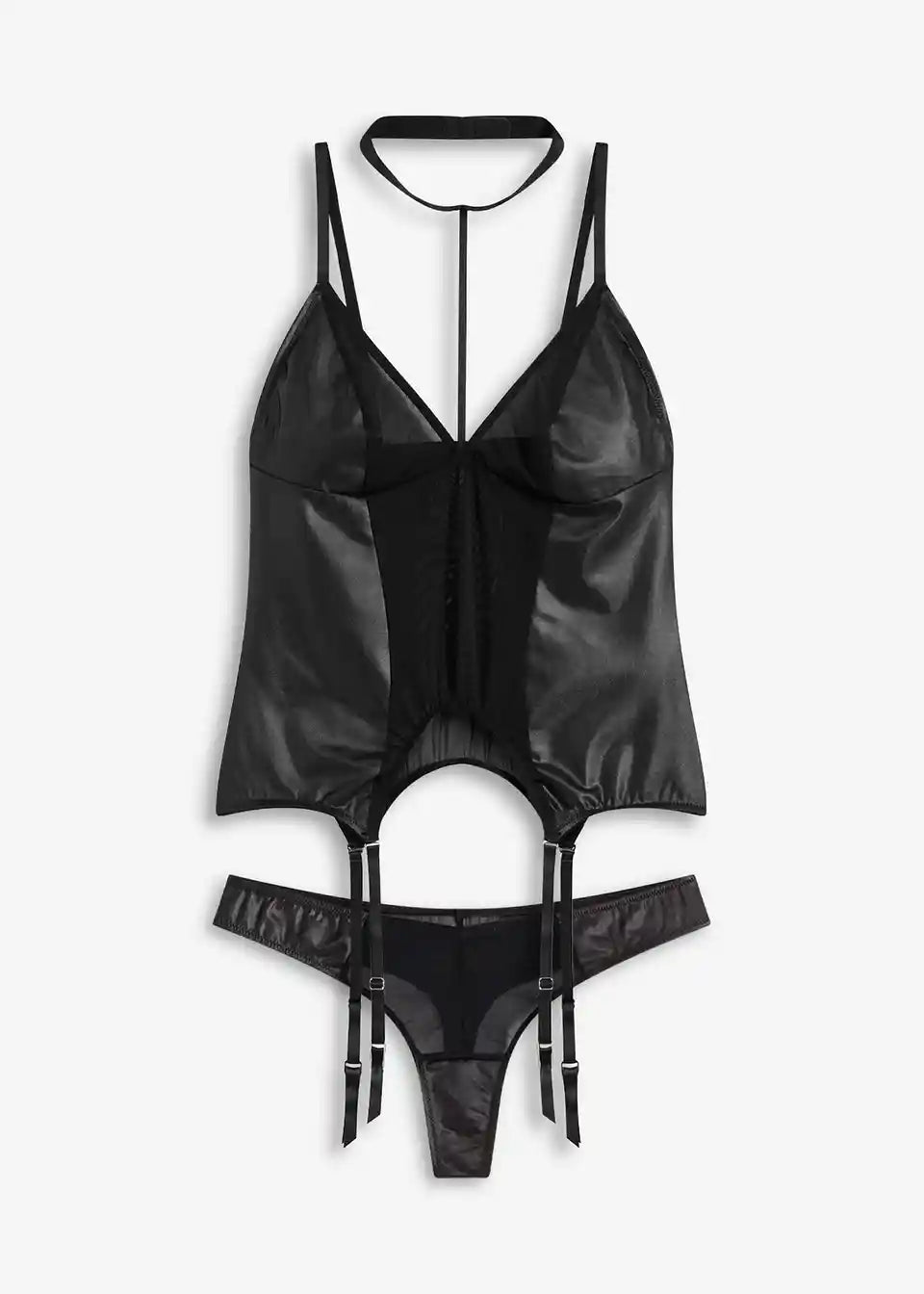 Strapstop + String (2-dijelni set) u Wetlook izgledu s mrežastim umetcima.