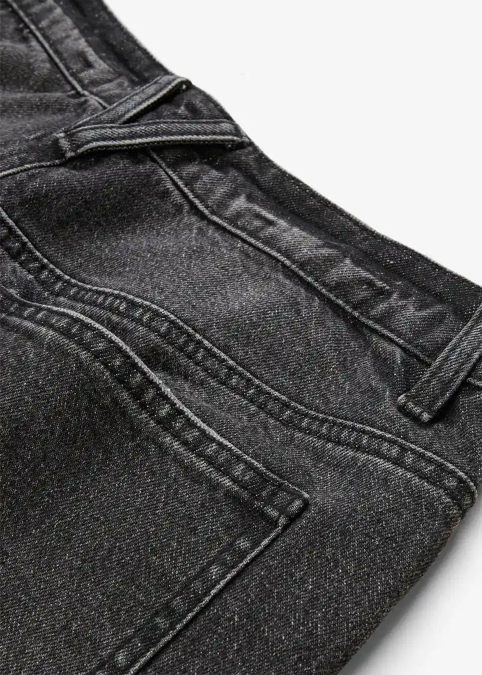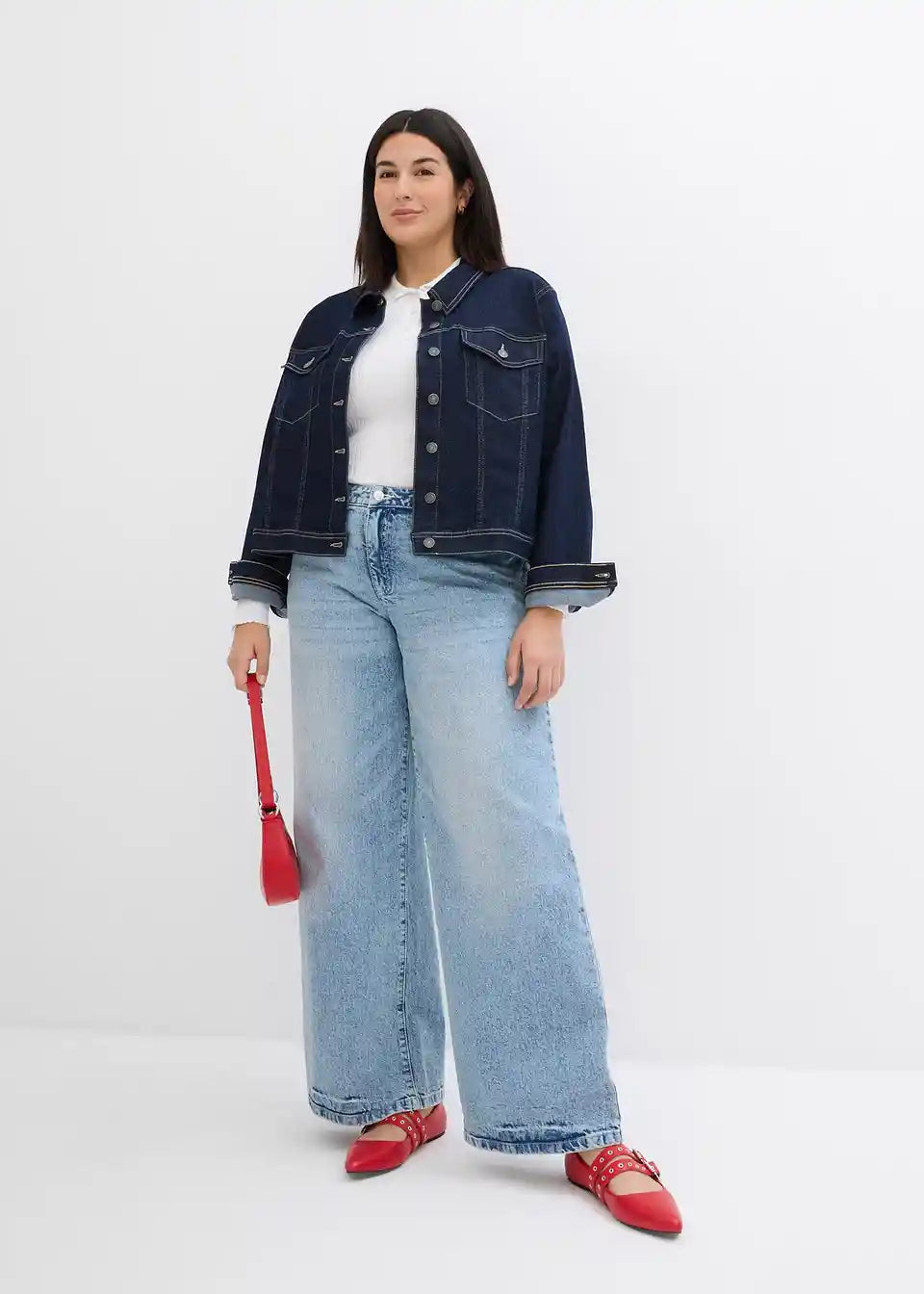 Široke 5-džepne traperice izrađene od čvrstog pamučnog trapera koji je u početku krut, ali s vremenom postaje mekši i opušteniji čestim nošenjem. Srednja visina struka sa zatvaračem i gumbom. Dugačka dužina tako da se stvara lagani stacking-efekt oko gležnjeva. Unutarnja duljina nogavice u veličini 42 cca 80,5 cm, prikladno za strojno pranje.