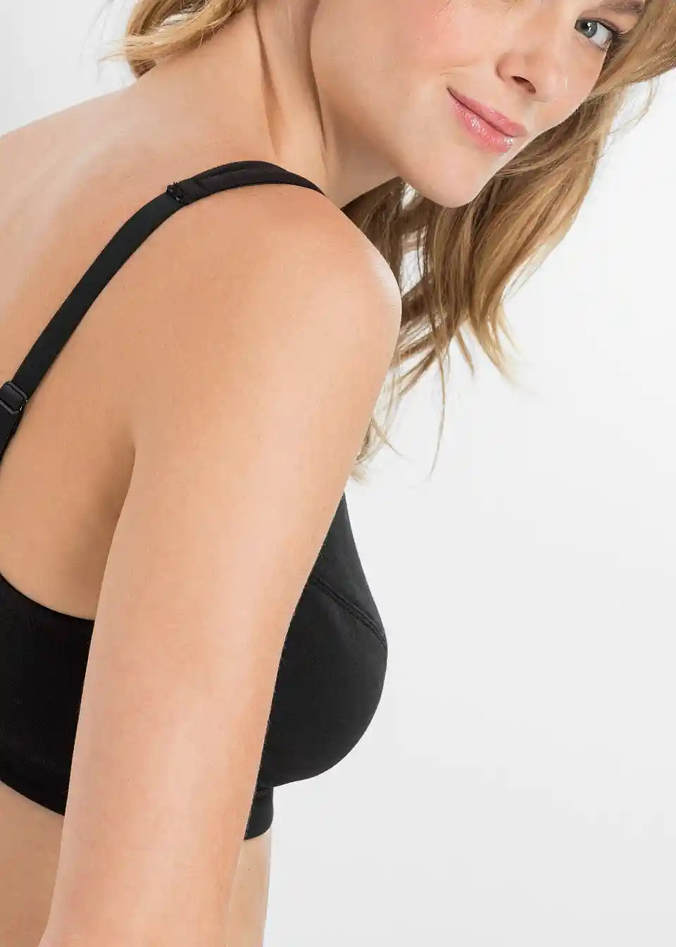 Ovaj grudnjak bez žica izrađen od organskog pamuka iz praktičnog paketa od dva komada iz bpc kolekcije oduševljava ugodnim osjećajem nošenja. Lagane podstave na naramenicama osiguravaju visoku udobnost. Mekana elastična traka ispod prsa upotpunjuje model. Između košarica čipkasti ukras uljepšava grudnjak u dvostrukom pakiranju. Na stražnjoj strani zatvara se kukicama i očicama.