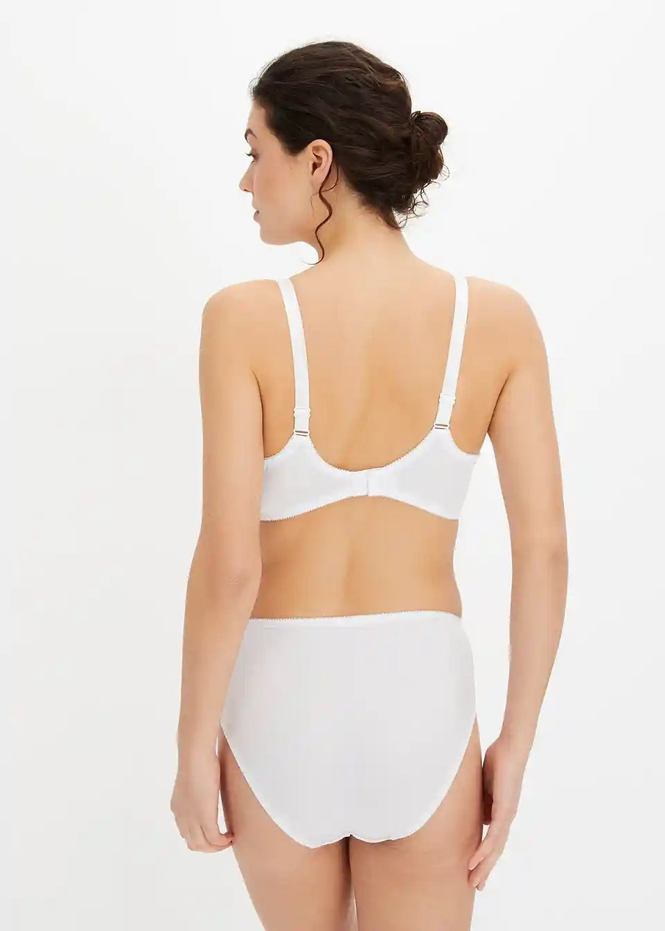 Elegantni dizajn s poluprozirnim čipkastim umetcima na gornjem dijelu košarica, koji se stapaju u naramenice, daje grudnjaku zavodljiv izgled. Poseban kroj optički smanjuje velik obujam grudi, dok oblikujuće žice kreiraju lijep dekolte. Naramenice podesive po dužini, kao i kopča s kukicama i očicama, nešto su šire kod većih veličina košarica.