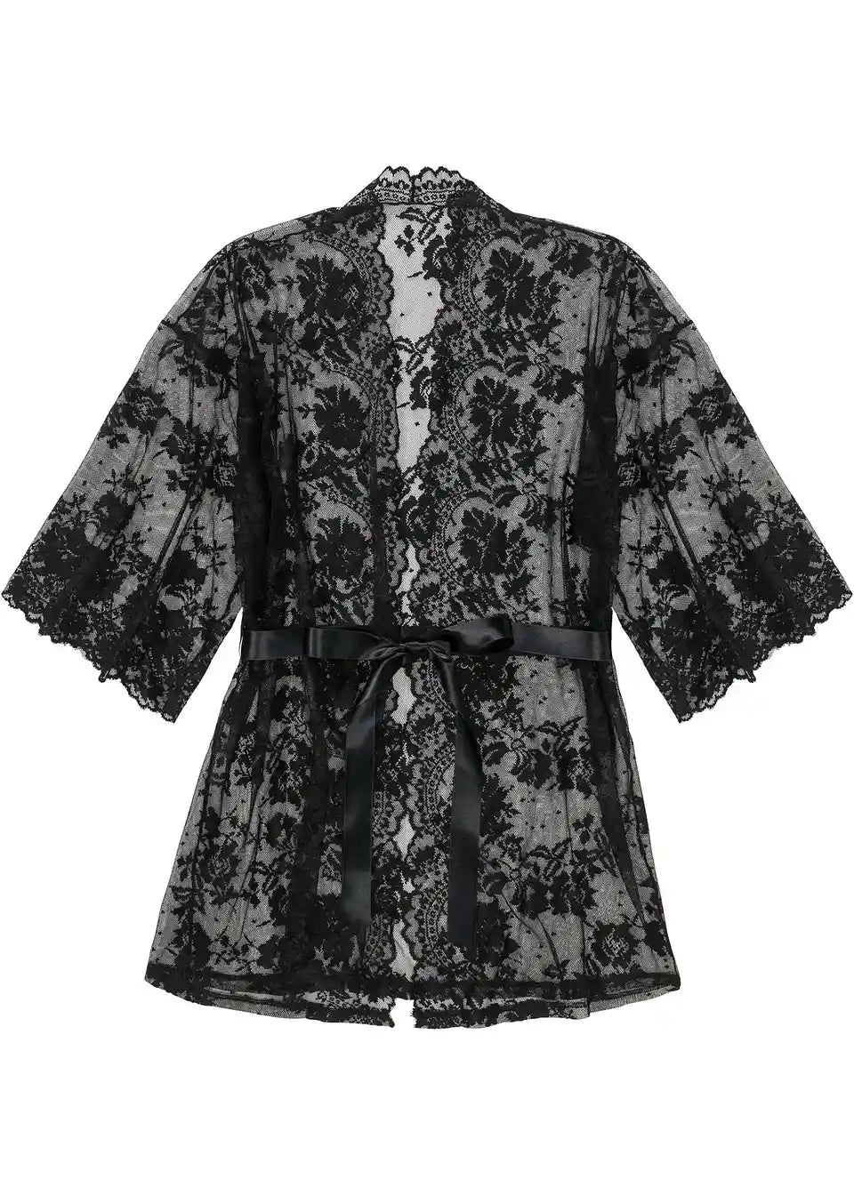 Wow! Ovaj vrući kimono obavija vaše obline elegantnom čipkom i omogućava im da se diskretno naziru. Luksuzna satenska mašna ukrašava vaš struk i omogućava varijabilno vezivanje. Kombinirajte kimono preko svog pidžame ili se istaknite u odgovarajućem donjem rublju za nezaboravnu noć.