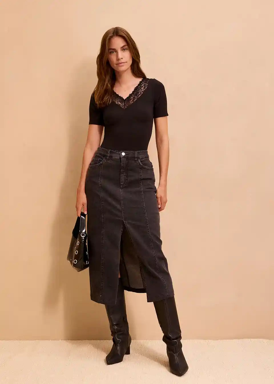 Udoban body s poludugim rukavima i čipkom za lijepo oblikovanu siluetu