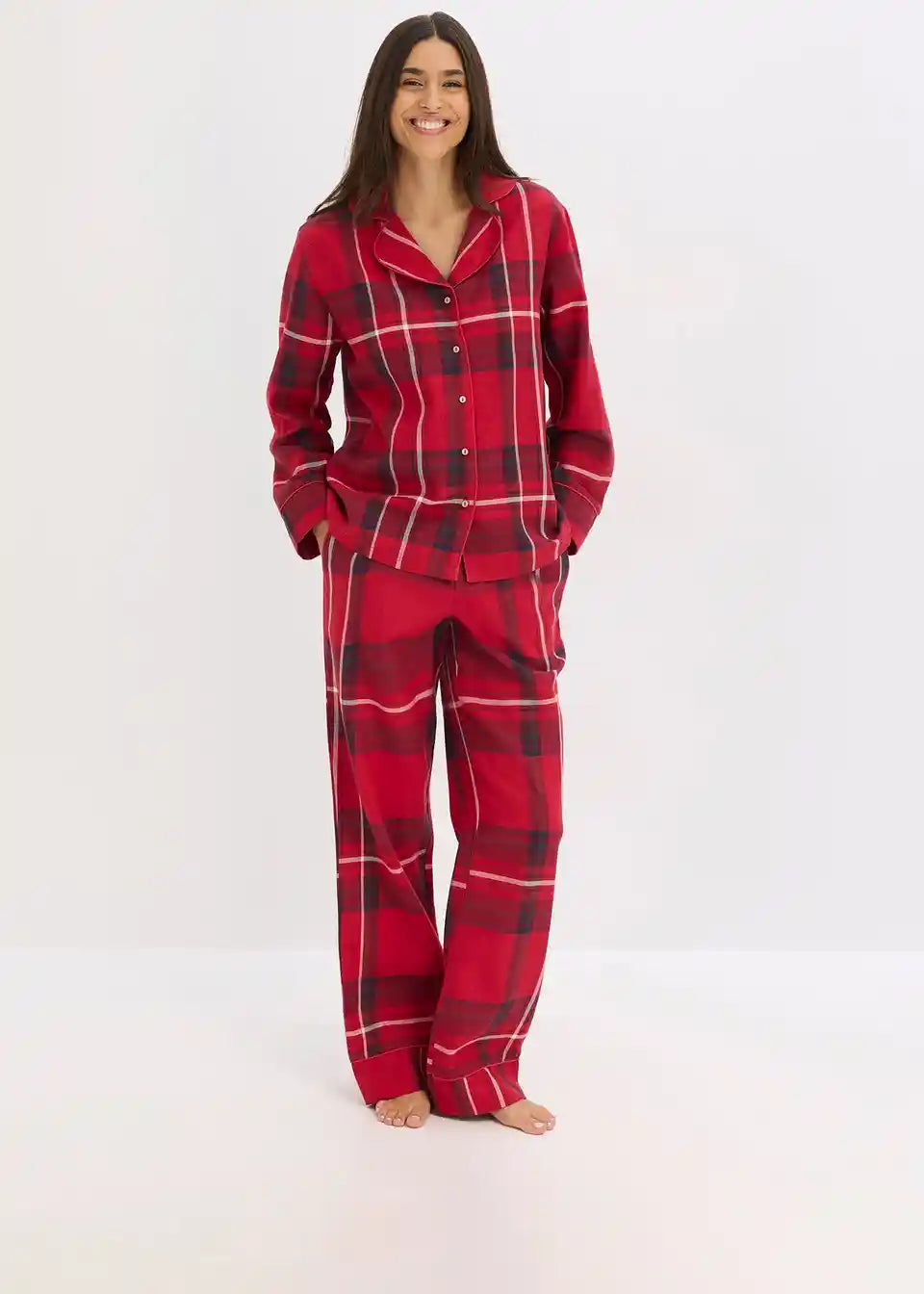 Tkana flanell pidžama s rever ovratnikom i džepom na prsima te bočnim džepovima na hlačama