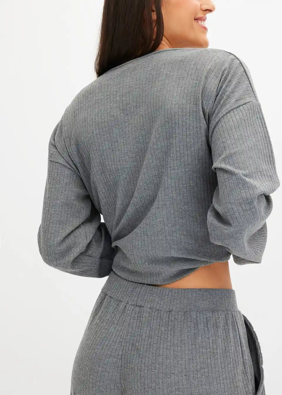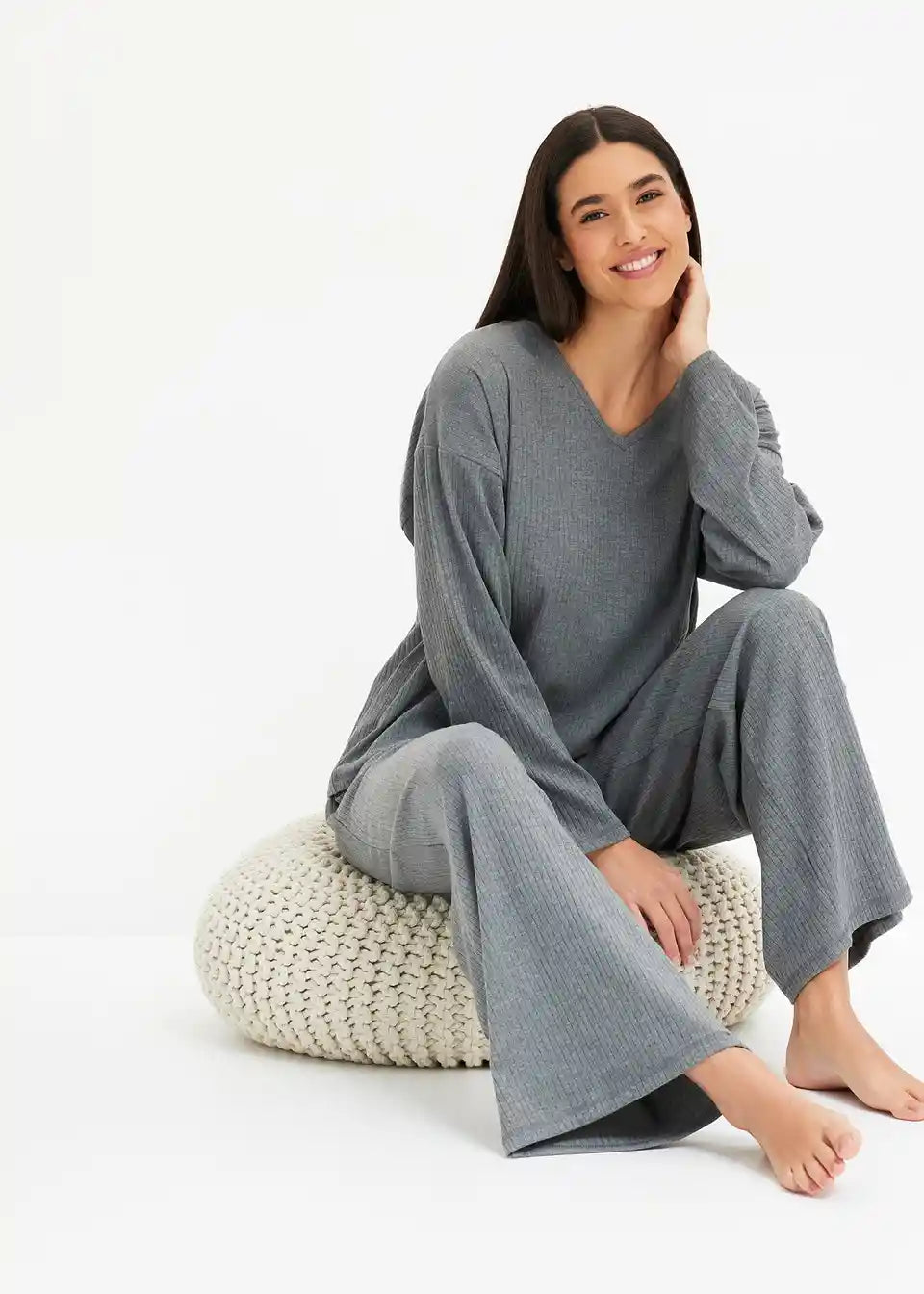 Moderan loungewear kućni komplet od udobnog rebrastog materijala u oversized kroju