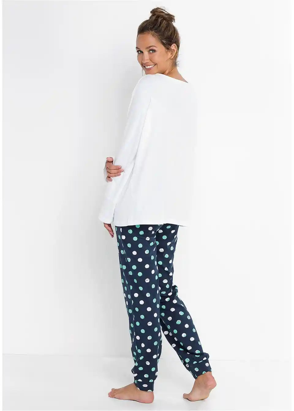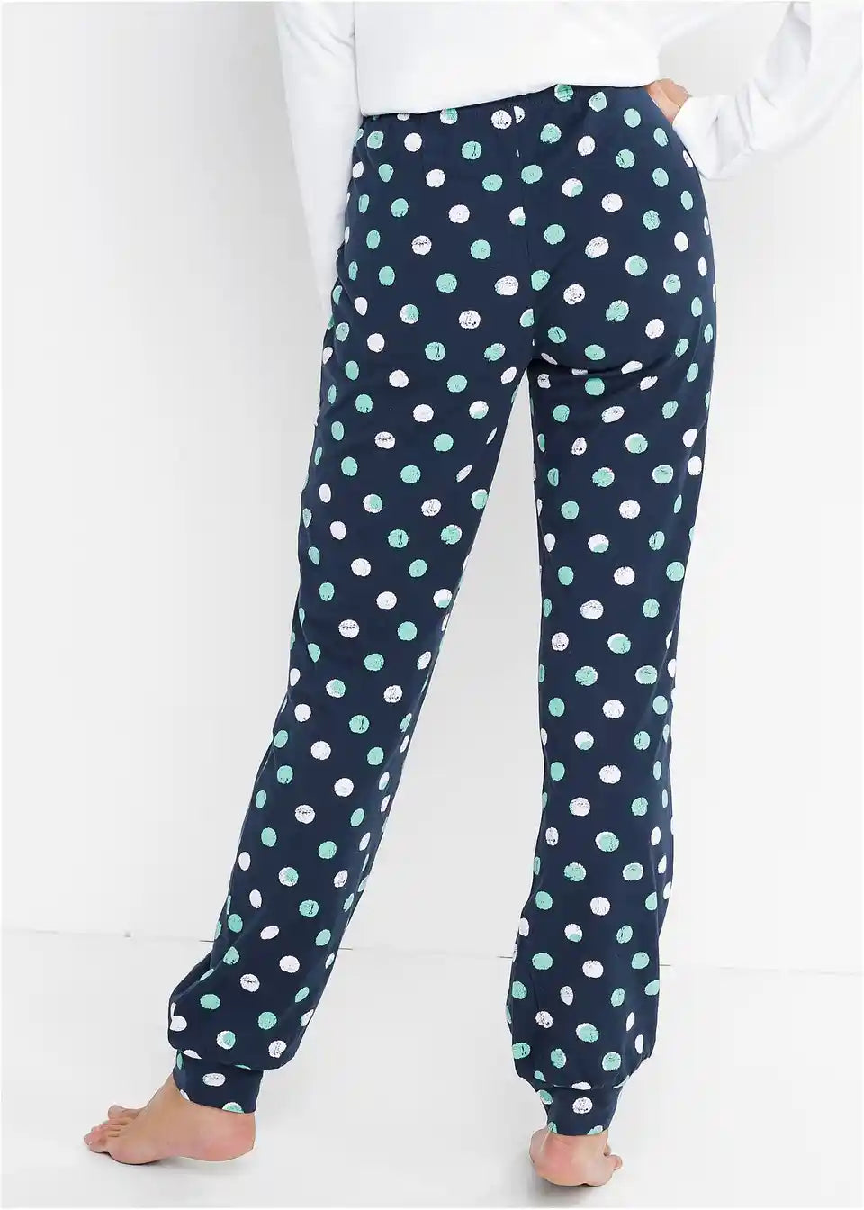 Jersey hlače impresioniraju svojim udobnim krojem. Mekana jersey tkanina čini hlače vrlo ugodnima za nošenje. Zahvaljujući elastičnom pojasu i manžetama na završetku nogavica, pidžama hlače nude izvrsnu udobnost. Ove udobne hlače za spavanje mogu se kombinirati s majicom po želji.