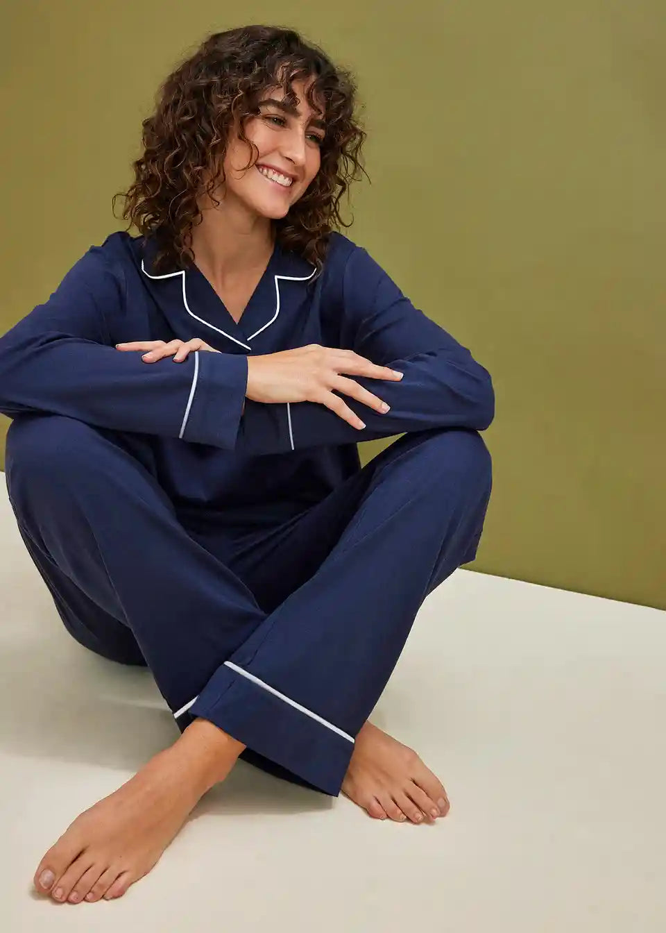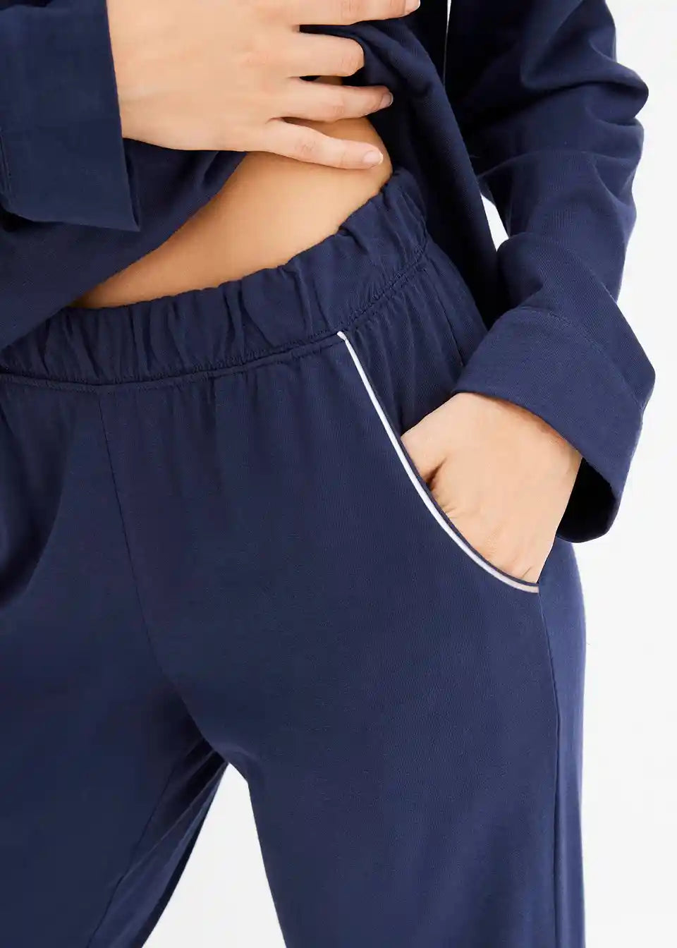 Udobna pidžama od mekane pamuka s rever ovratnikom