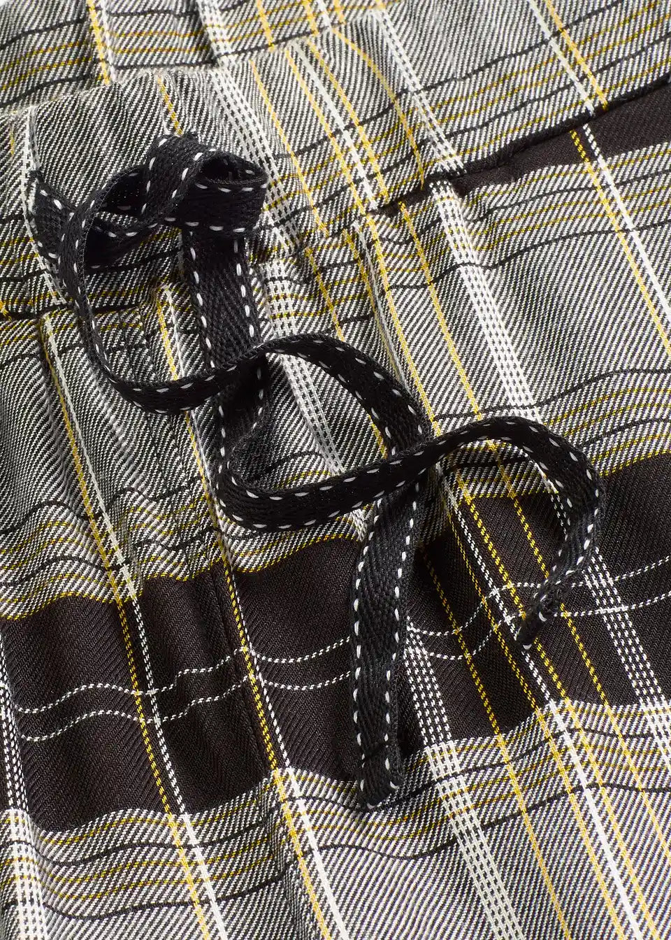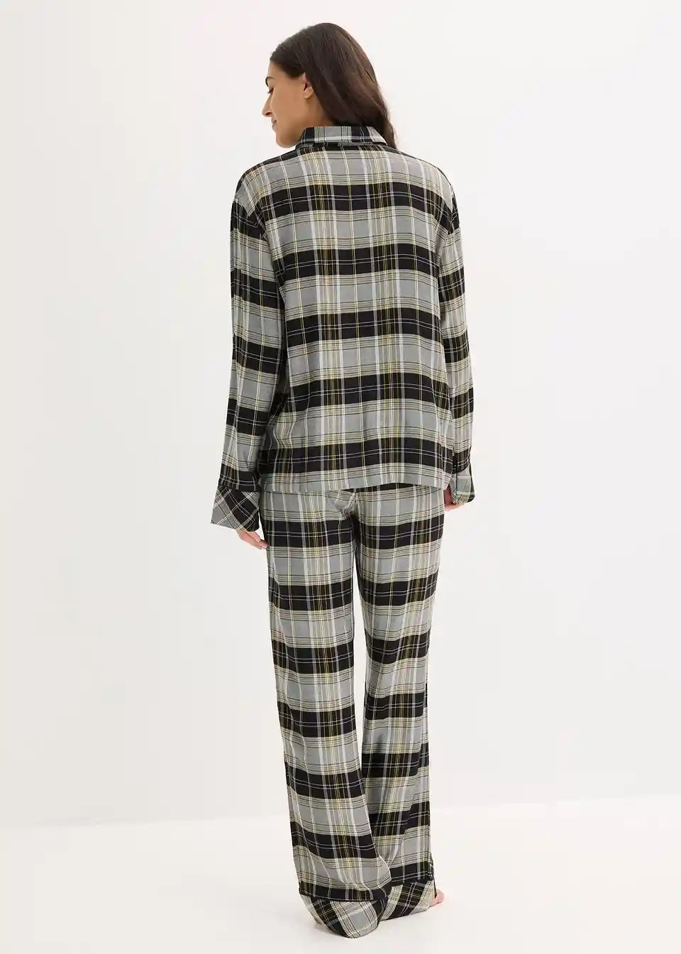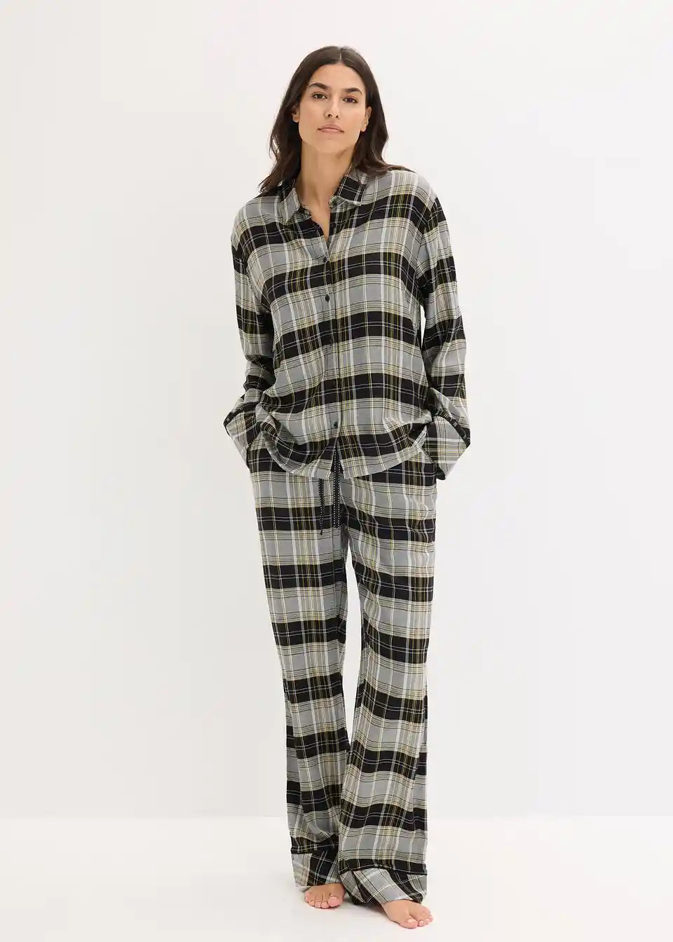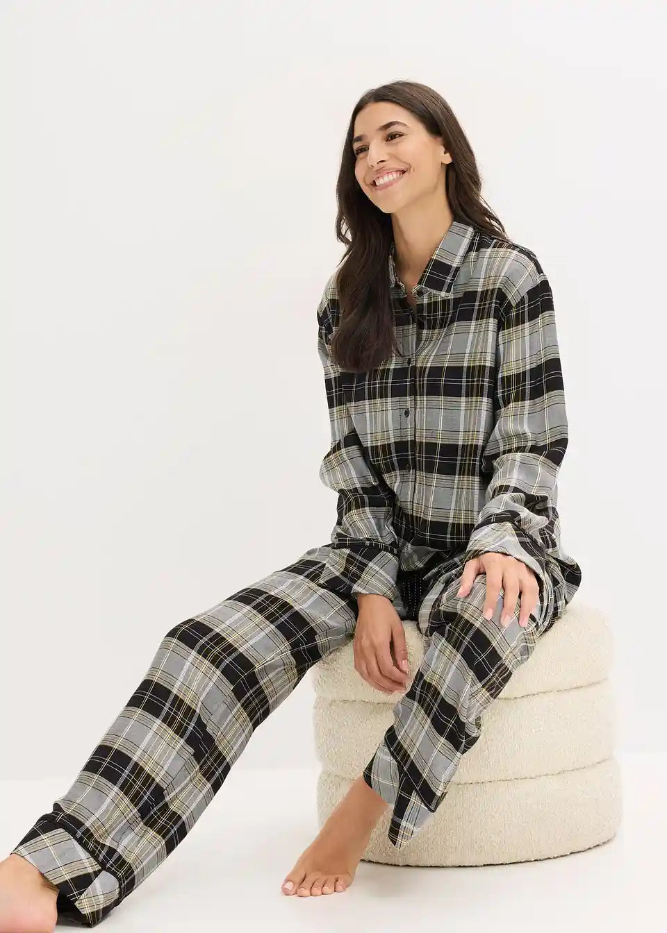 Tkani flanel pidžama s bluzom sa čipkastim ovratnikom i džepovima na hlačama te vezicom