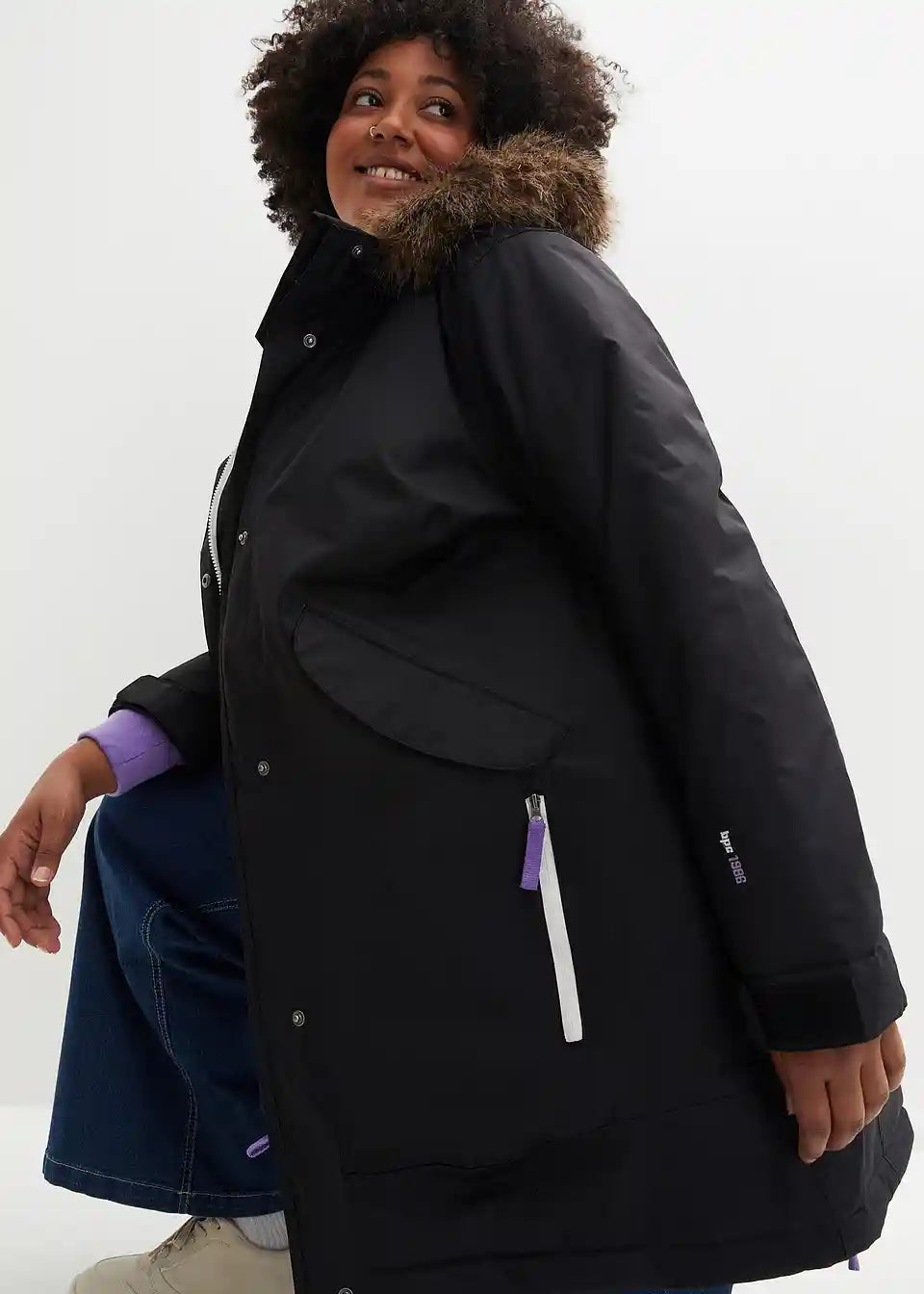 Savršena za vjetar i kišu: sportski funkcionalni outdoor kaput marke bpc impresionira svojom izradom otpornom na sve vremenske uvjete, sa zavareni šavovima i termo postavom. Funkcionalni materijal je apsolutno vodonepropusan, vjetrootporan i prozračan (cca. 3.000 g/m²/24h). Dodatnu zaštitu od hladnoće i kiše pružaju kapuljača s mogućnošću podešavanja širine pomoću vezice i odvojivim umjetnim krznom te dvosmjerni patentni zatvarač sa zaštitom za bradu. Sa dva vodonepropusna džepa s patentnim zatvaračem i dva prednja džepa s preklopom, kao i mrežastim džepom i džepom s patentnim zatvaračem s vođenjem kabla iznutra, funkcionalni kaput nudi obilje prostora za pohranu. Širina se može podesiti vezicom na porubu i struku te čičak zatvaranjem na rukavima.