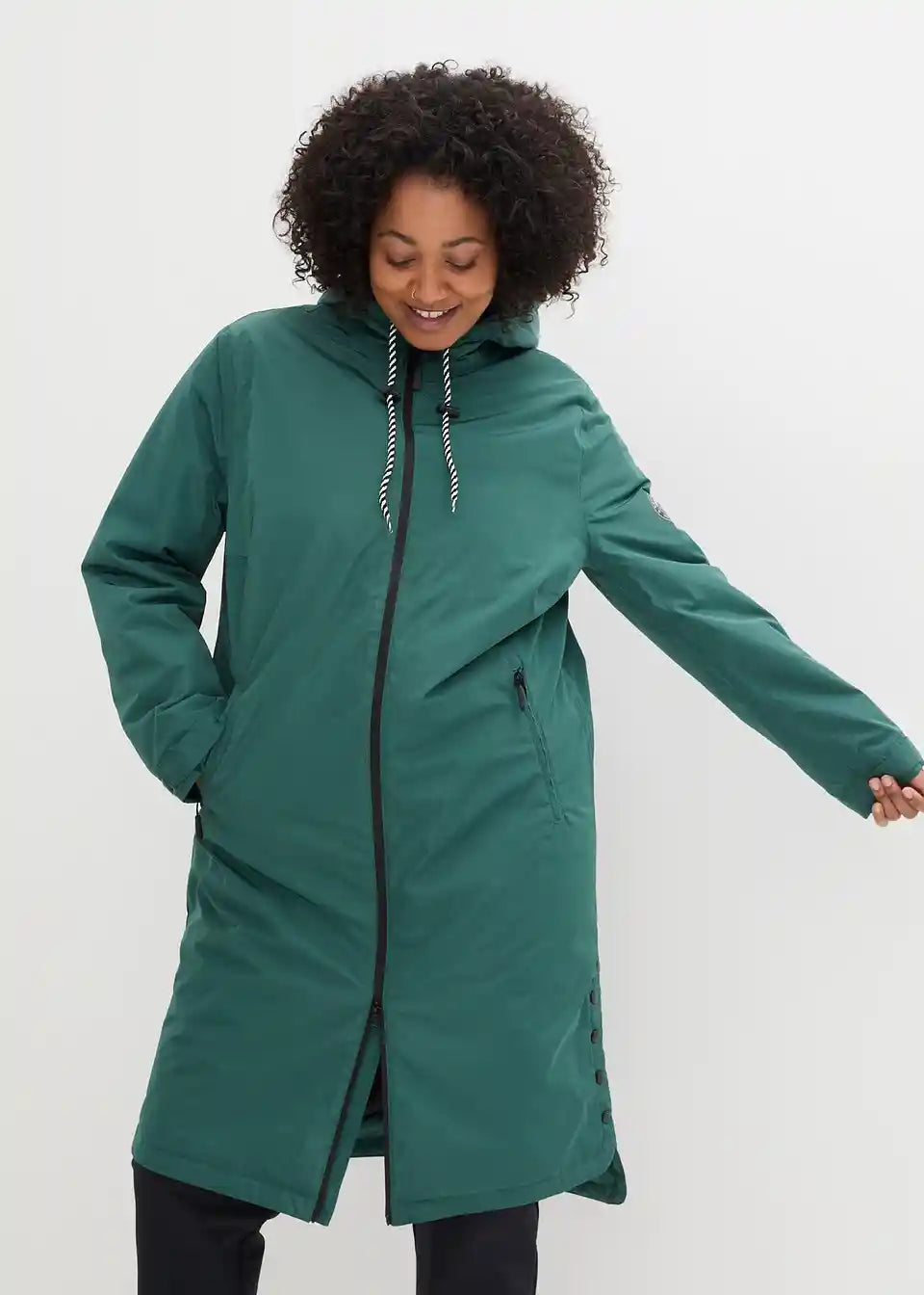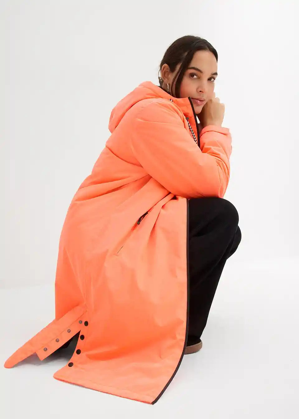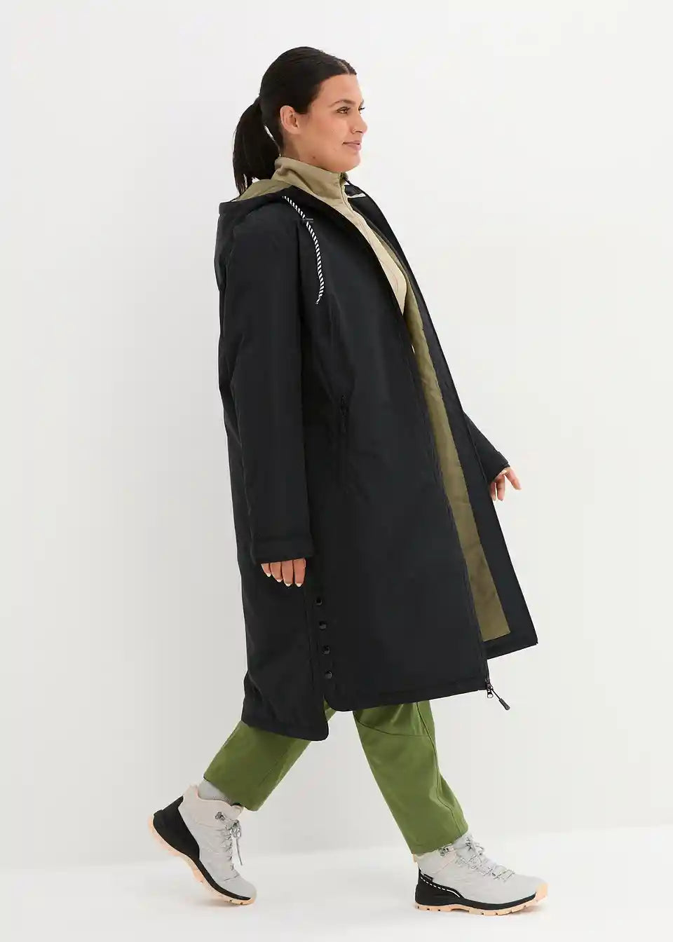 Funkcionalna kabanica midi dužine, lagano podstavljena, s džepovima s patentnim zatvaračem, udobnog kroja