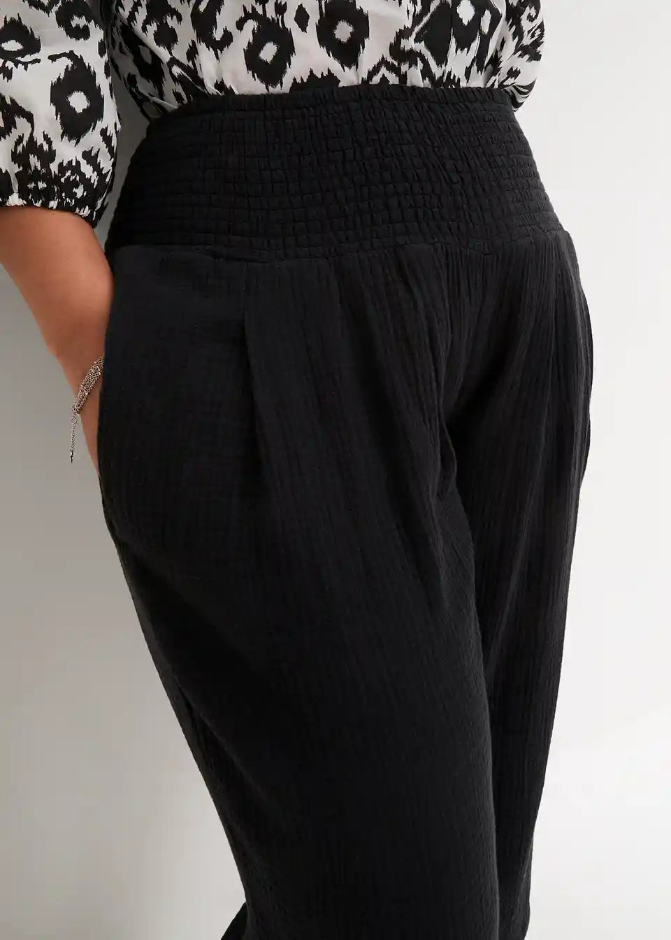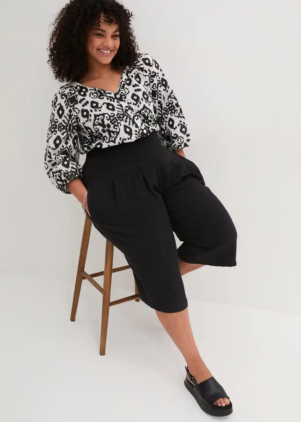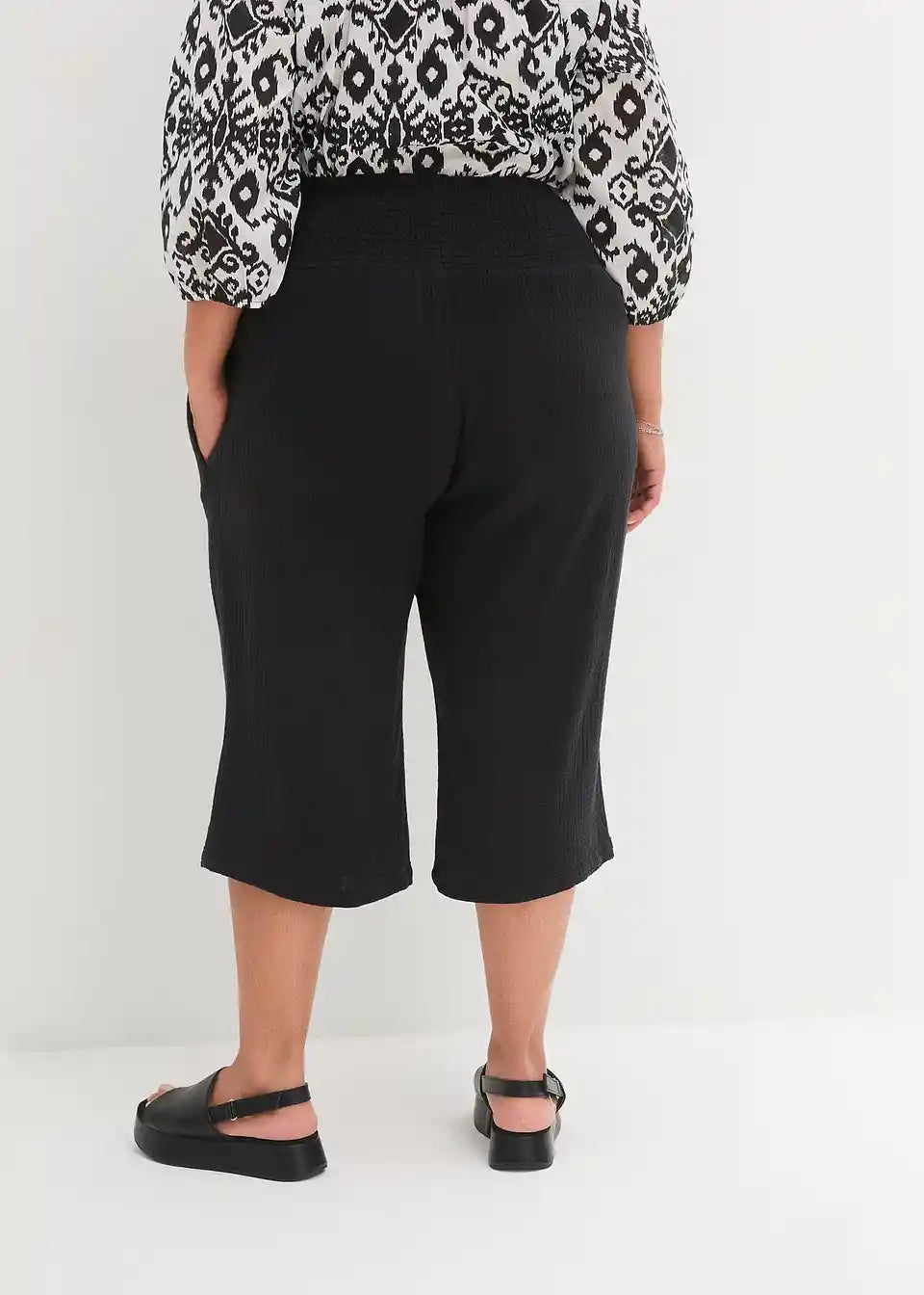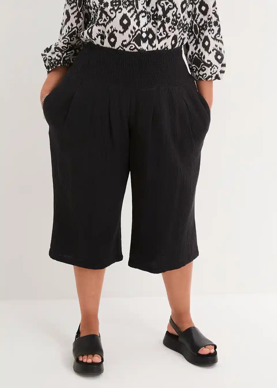Udobne Capri-hlače sa širokim elastičnim pojasom i džepovima od čistog pamuka