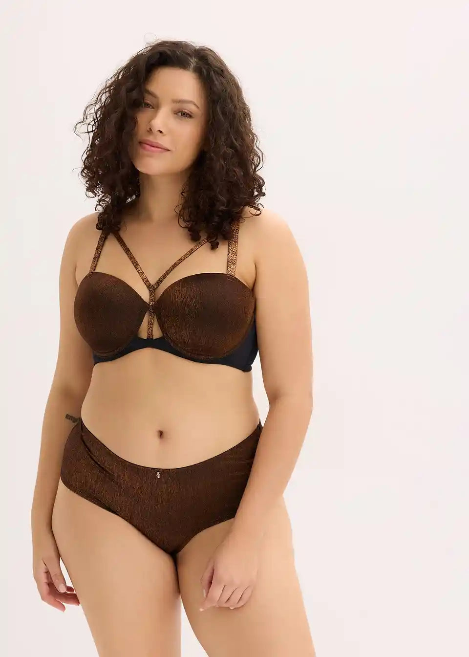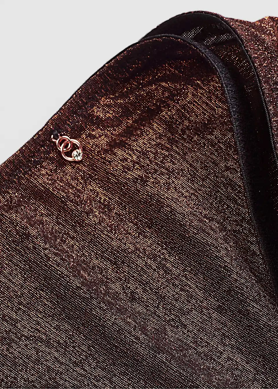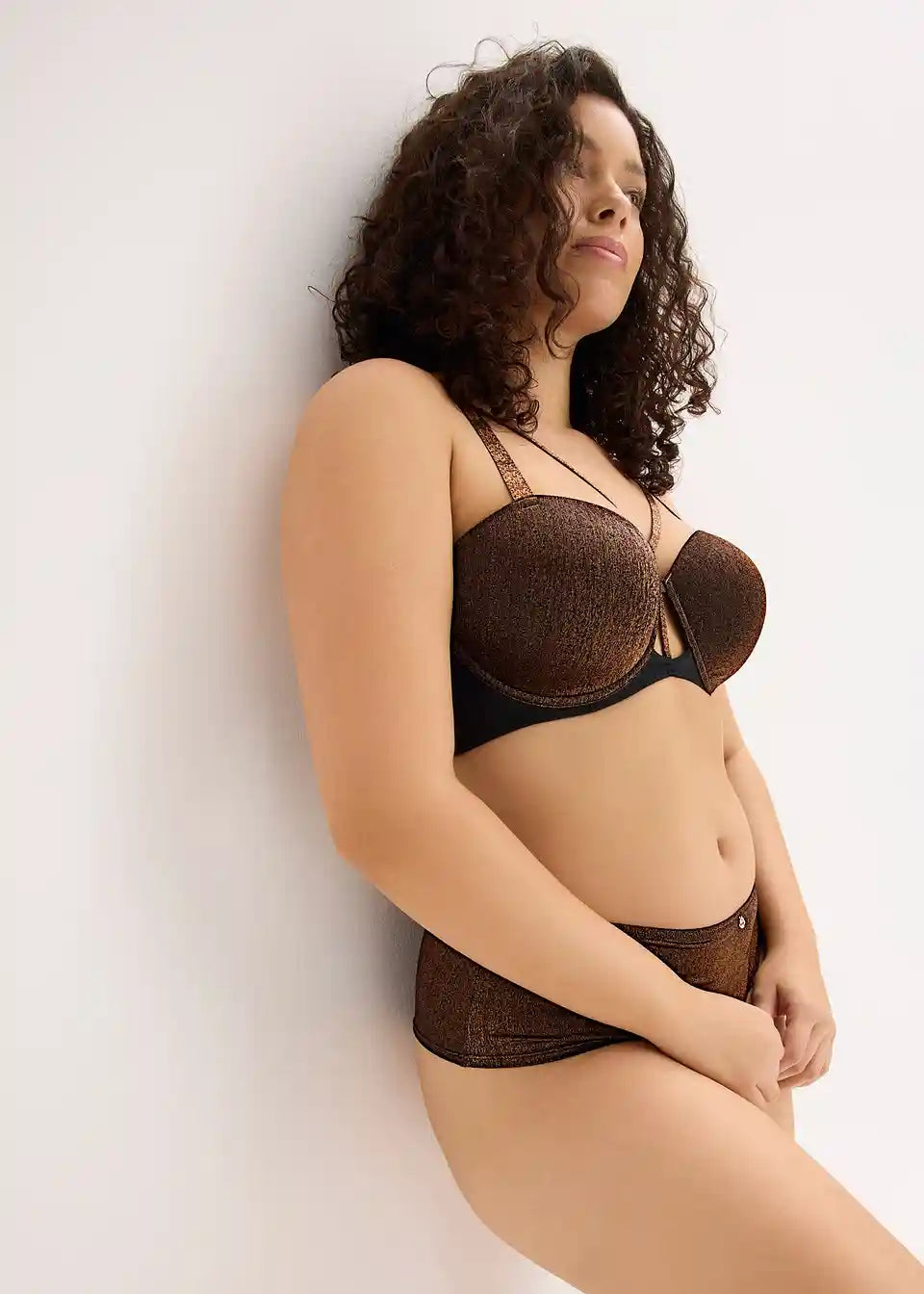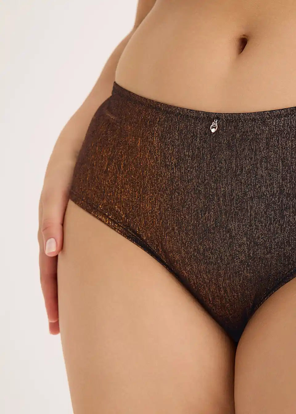 Maxi brazilian gaćice od svjetlucavog materijala sa slatkim ukrasnim detaljem.