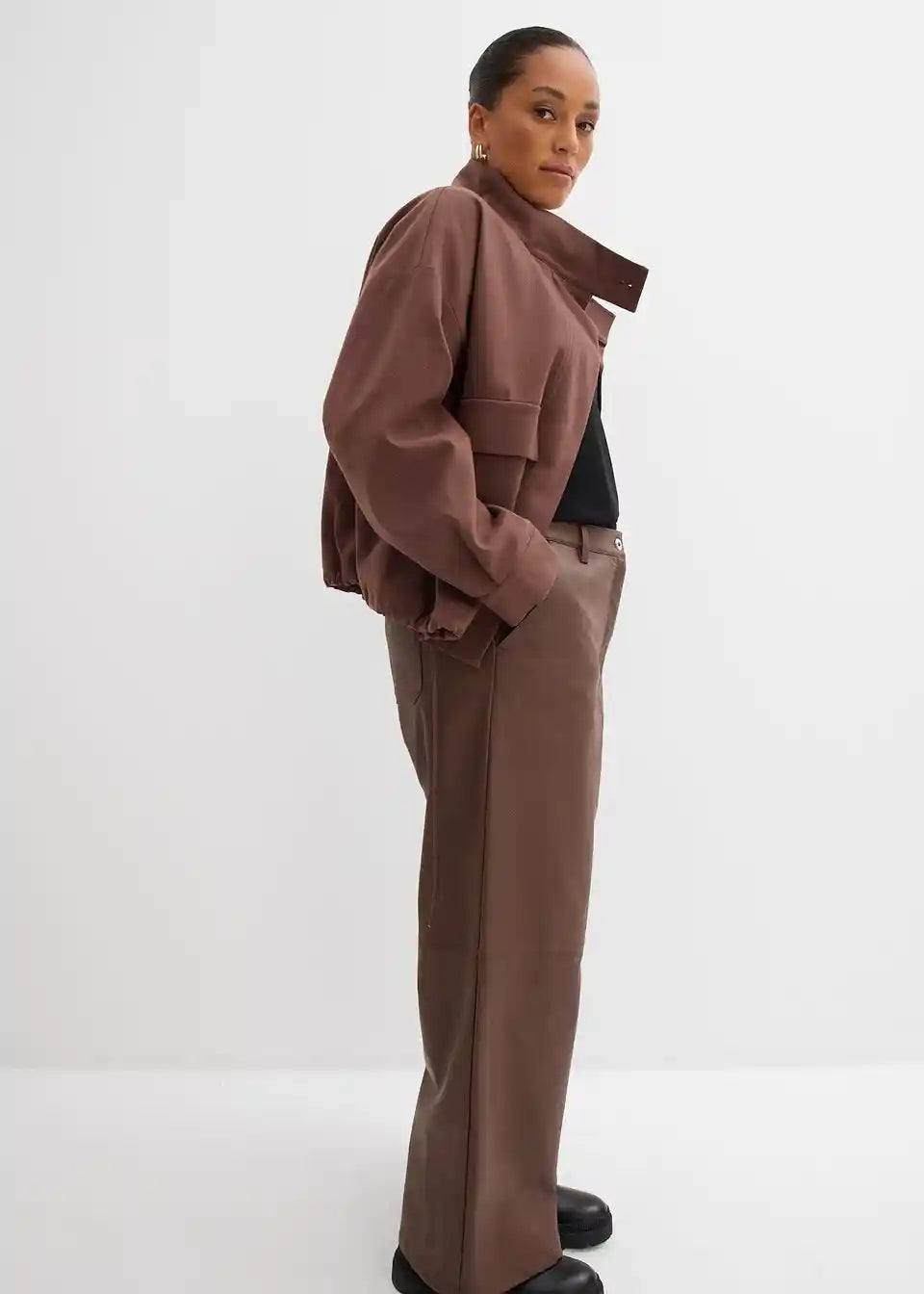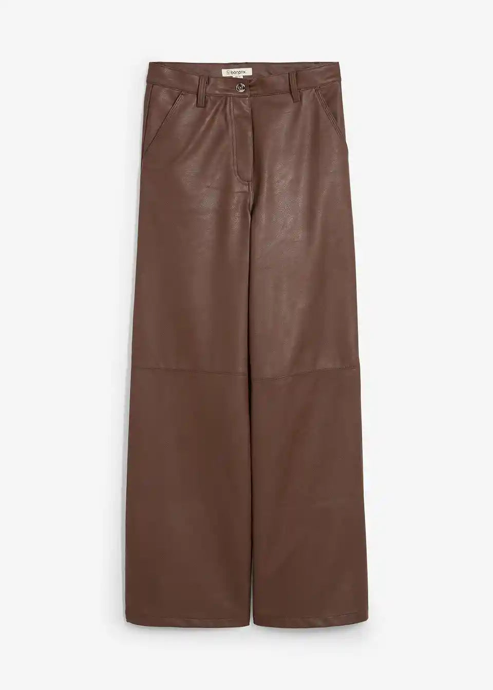 Lepršave hlače od imitacije kože s odgovarajućim prošivima u boji u visini koljena