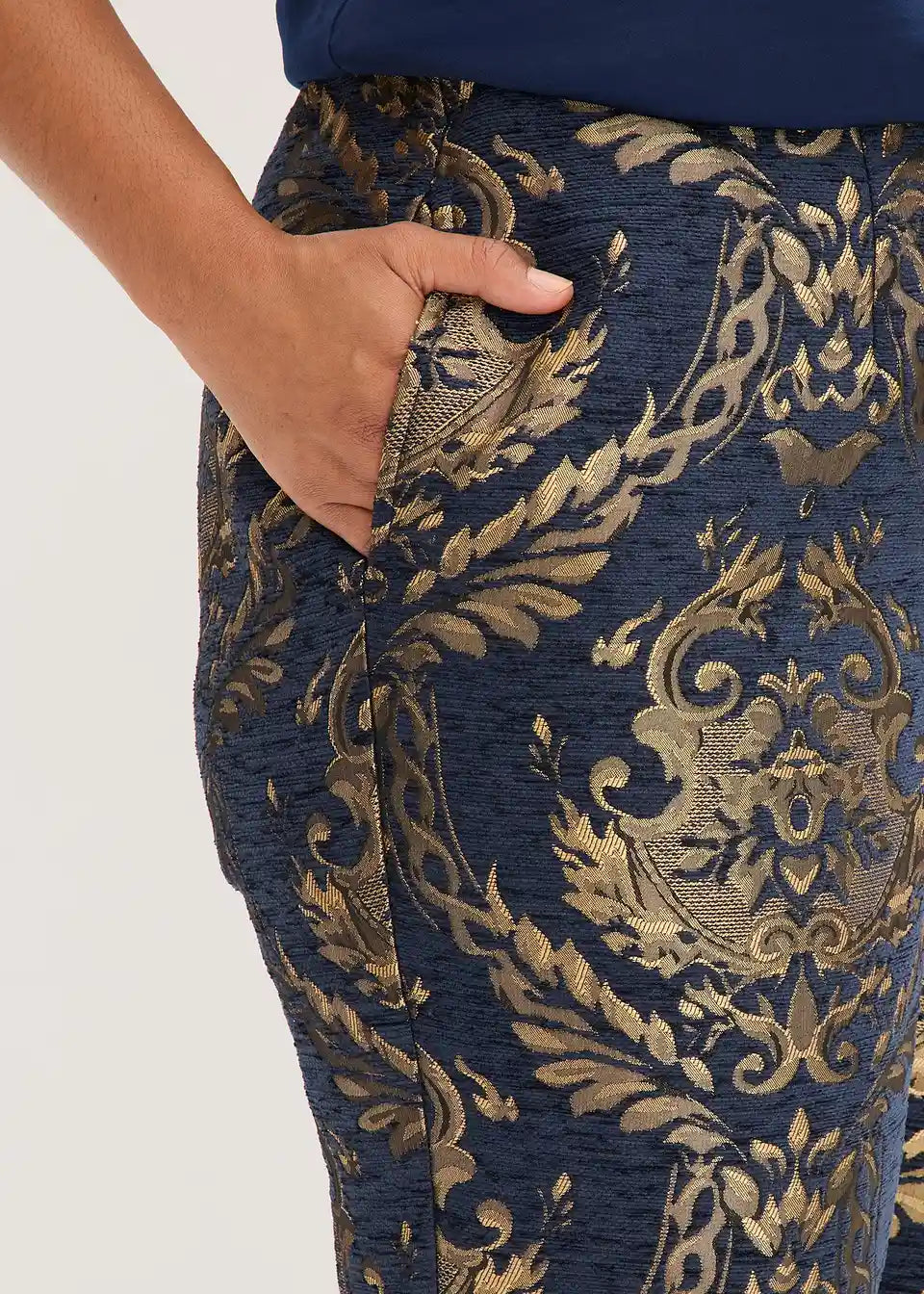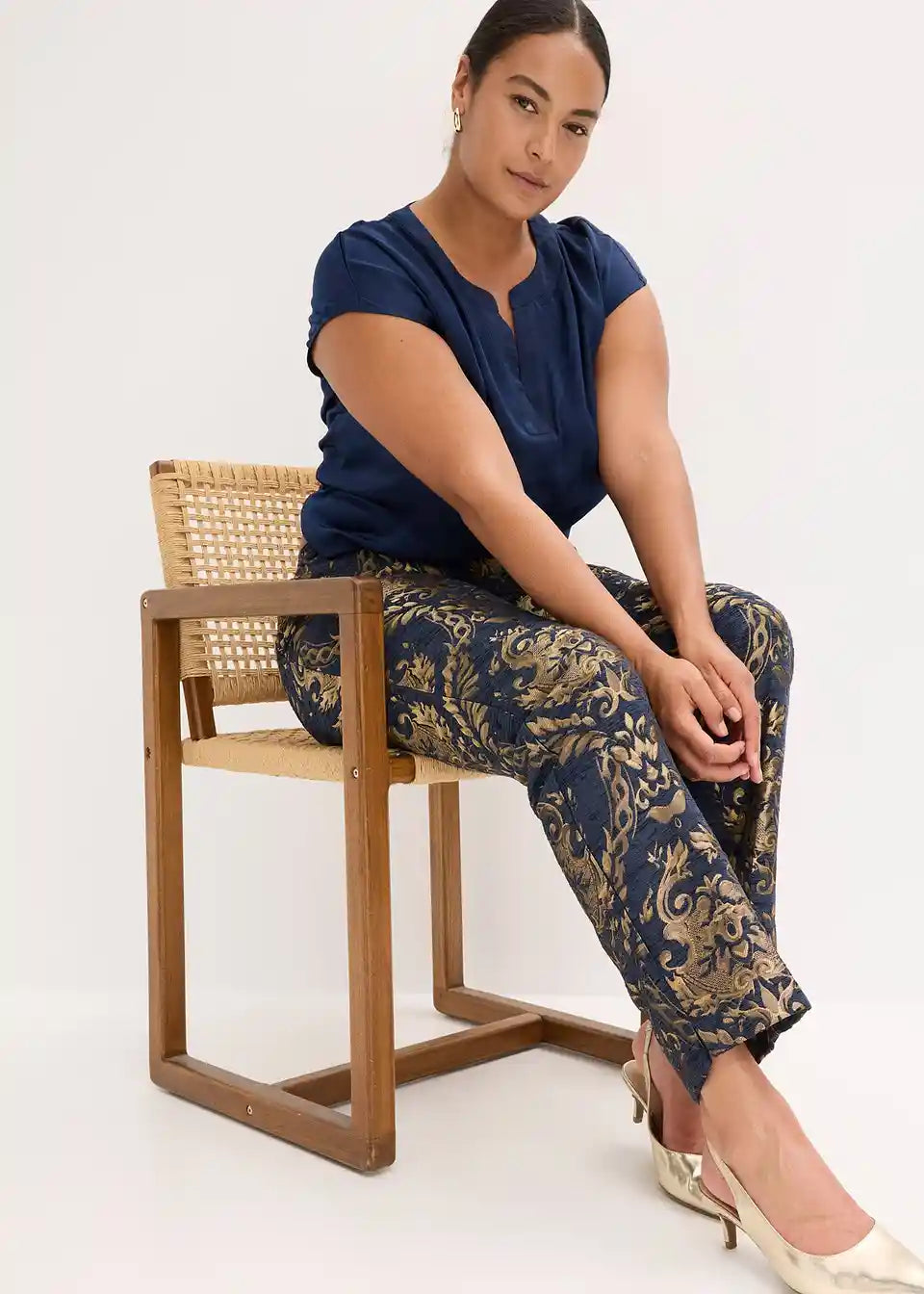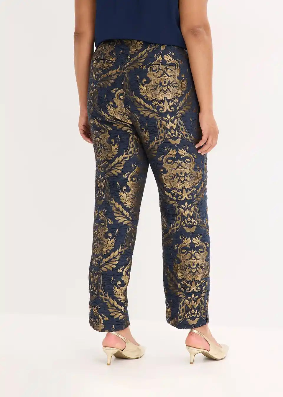 Modern i ženstveno: duge Jacquard-hlače od sjajnog materijala
