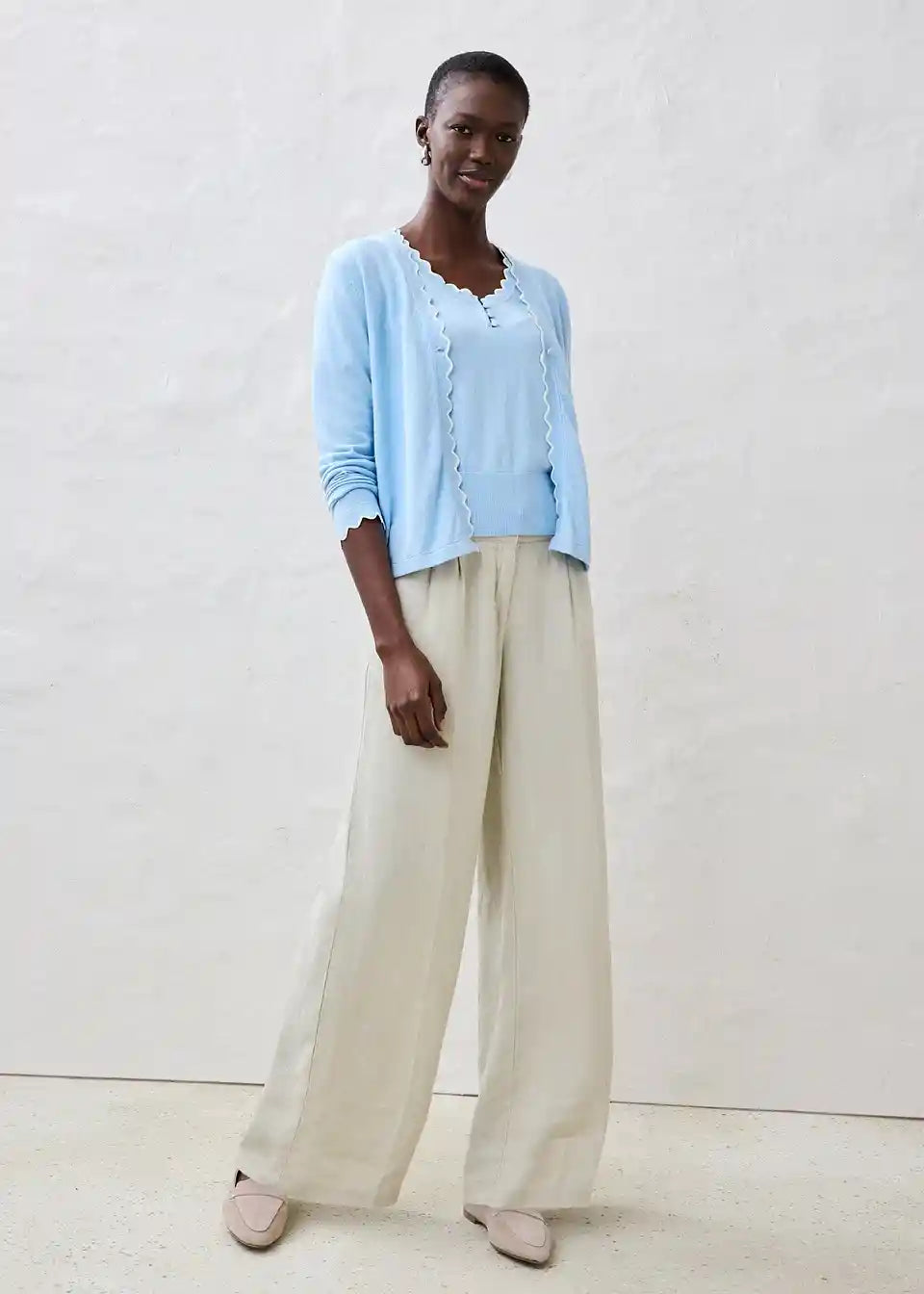 Lan je izdržljivo prirodno vlakno koje zahvaljujući svojim svojstvima pruža osjećaj hlađenja na koži. Plemenite nabore i strukturirana površina su karakteristične značajke. Lan je ugodan i prozračan za nošenje te je tvoj idealan suputnik za ljeto.