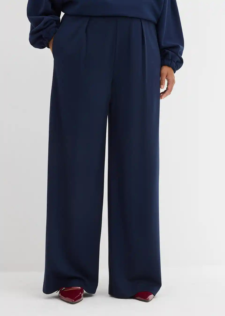 Hlače sa širokim nogavicama, naborima i elastičnim pojasom