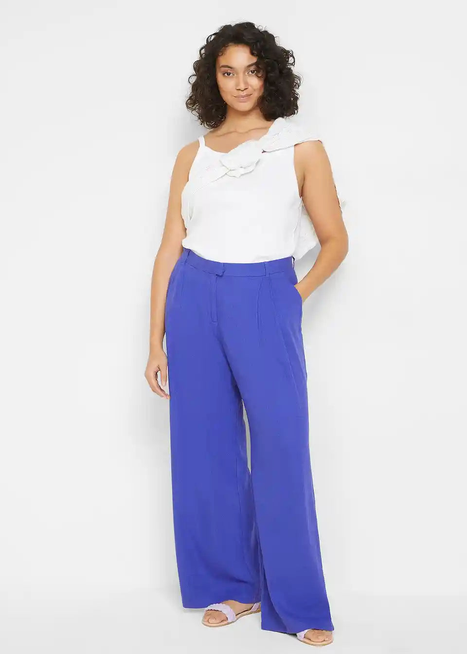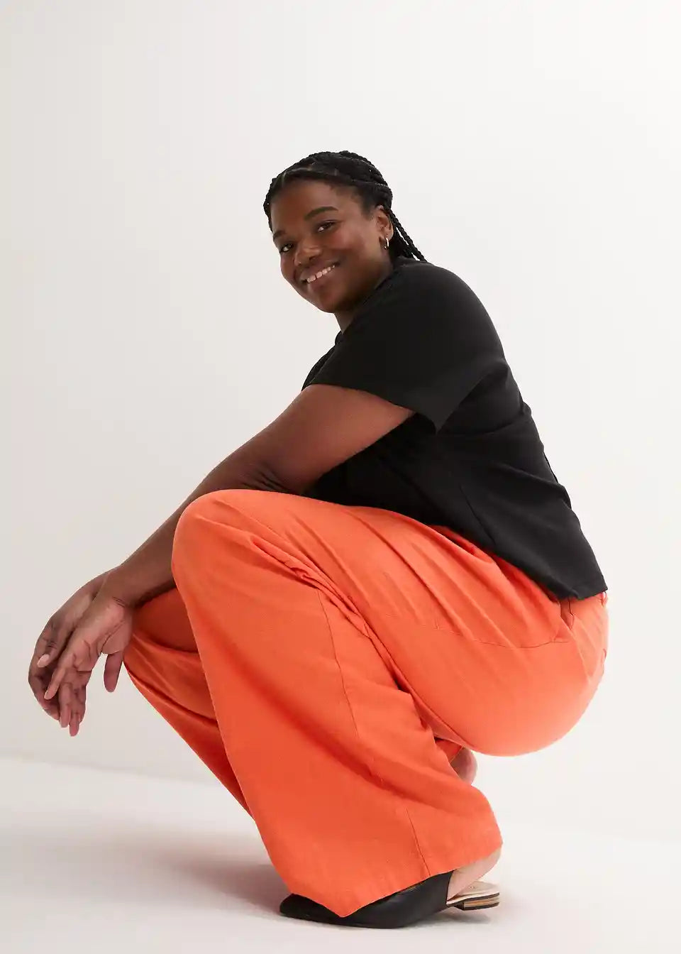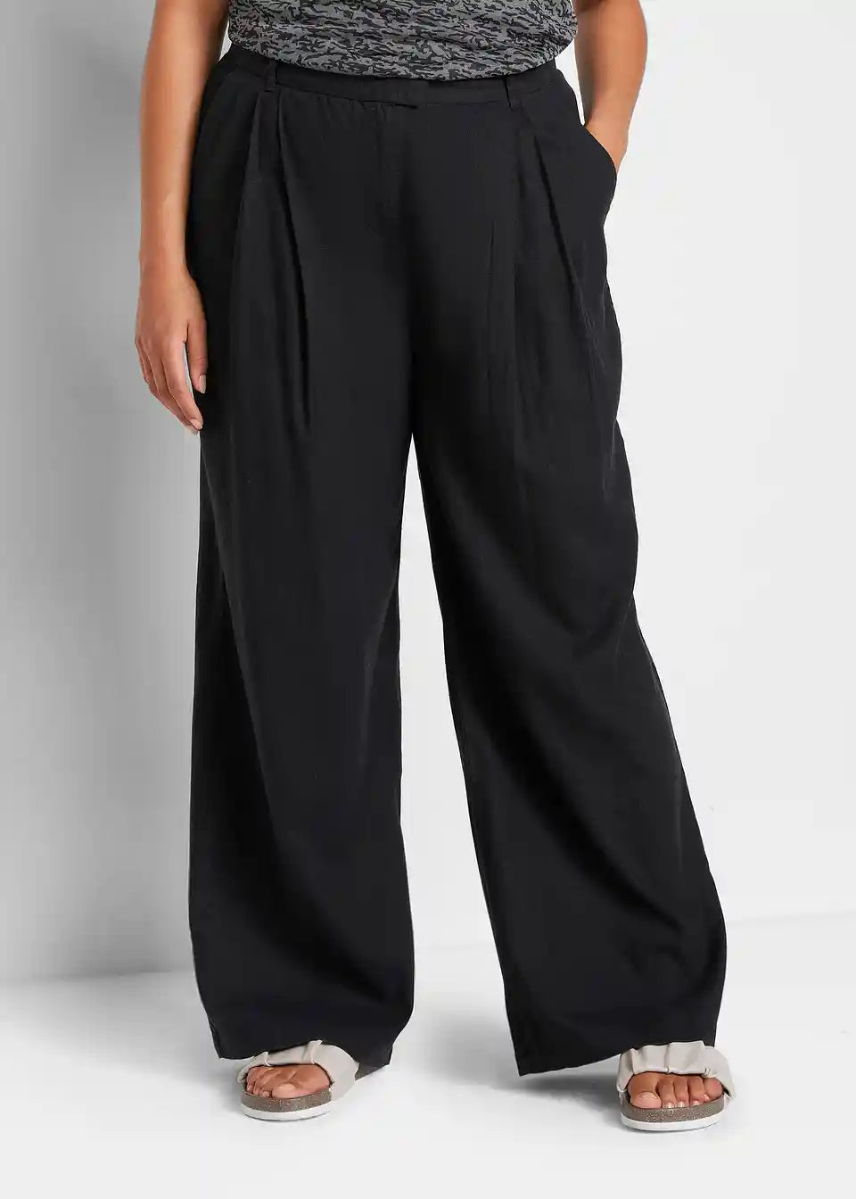 Ležerne Palazzo-hlače s lanom, s vrlo širokim nogavicama.