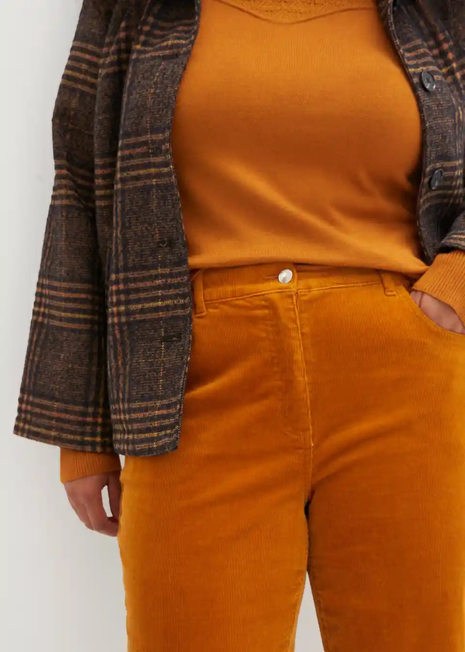 Moderne jesenske rebraste hlače s naboranim pojasom