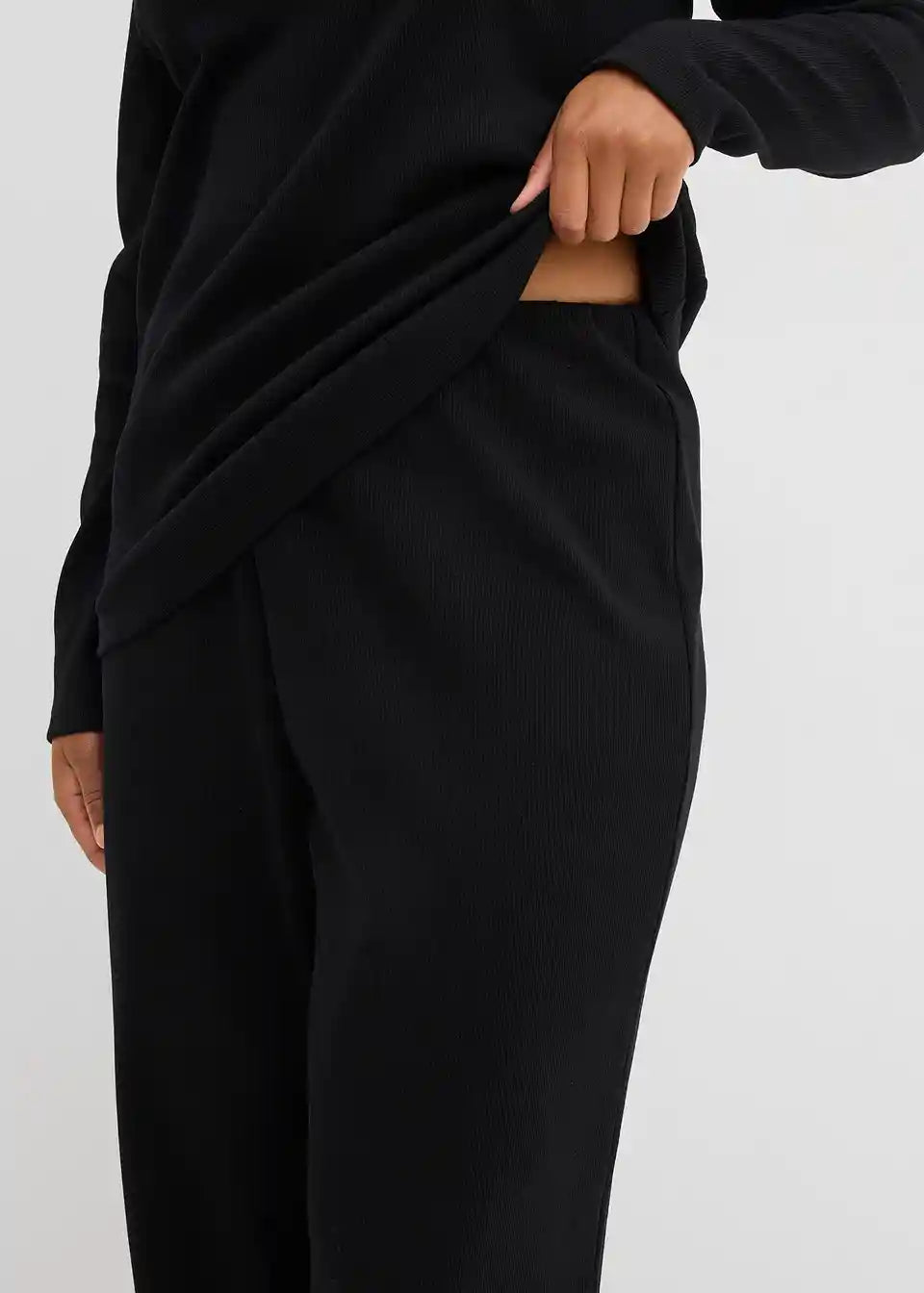 Rebraste hlače sa širokim nogavicama i elastičnim pojasom