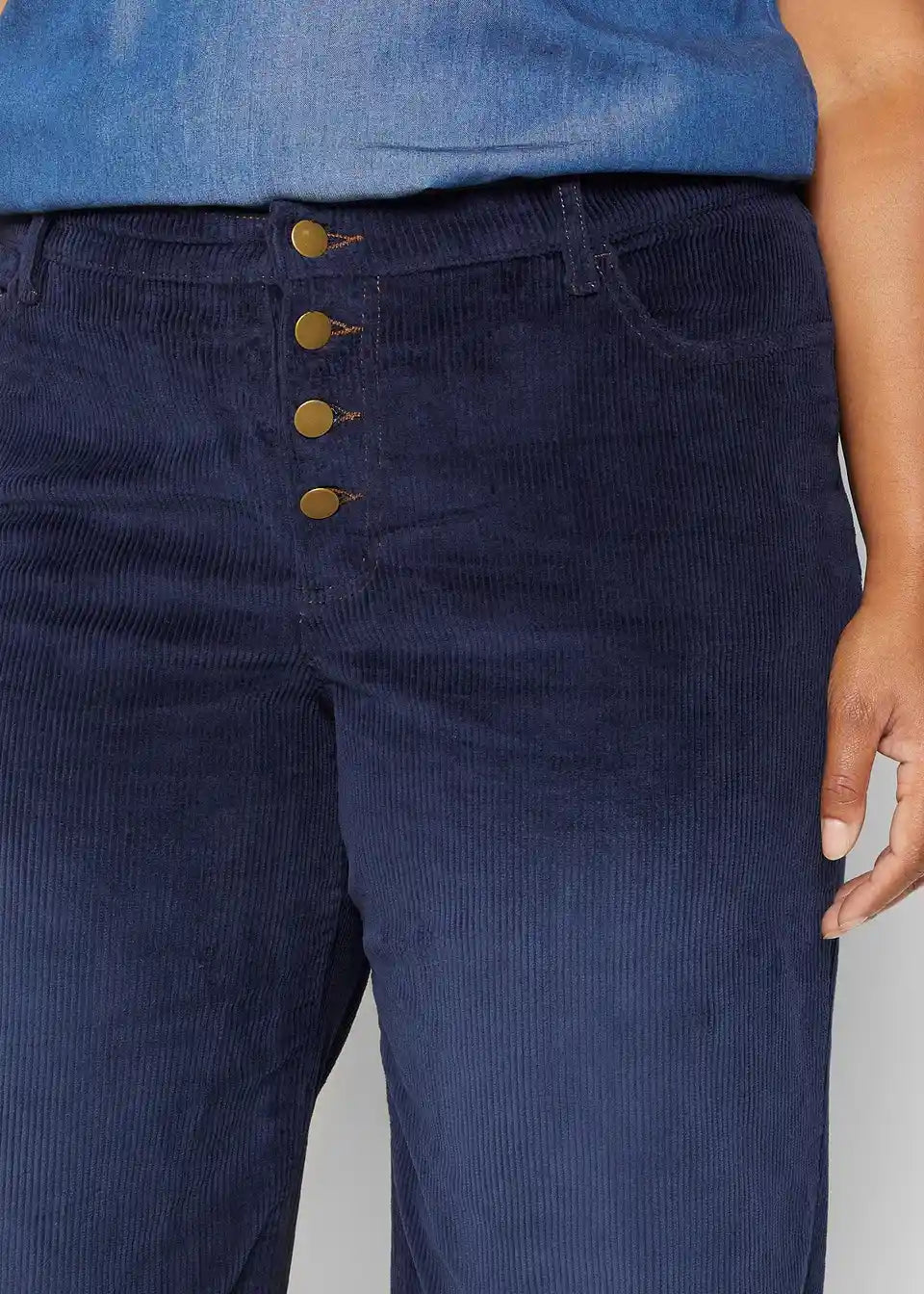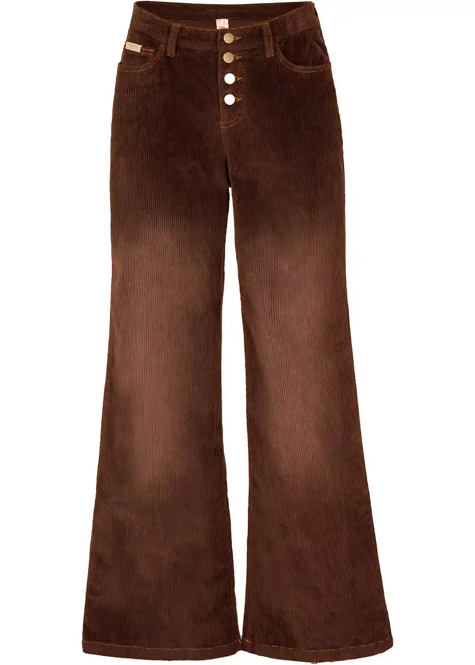 Široke Stretch-kord hlače s kopčanjem na gumbe