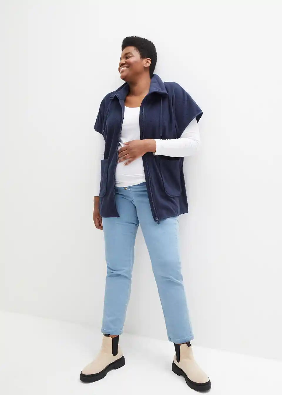 Fleece prsluk s opuštenim ramenima i našivenim džepovima