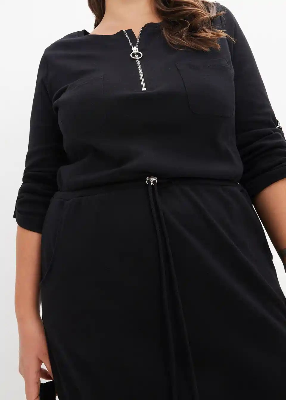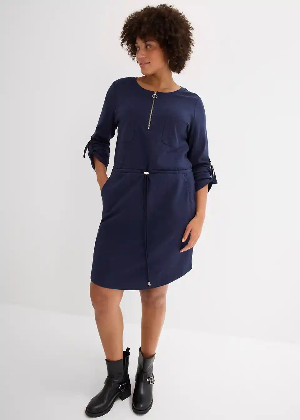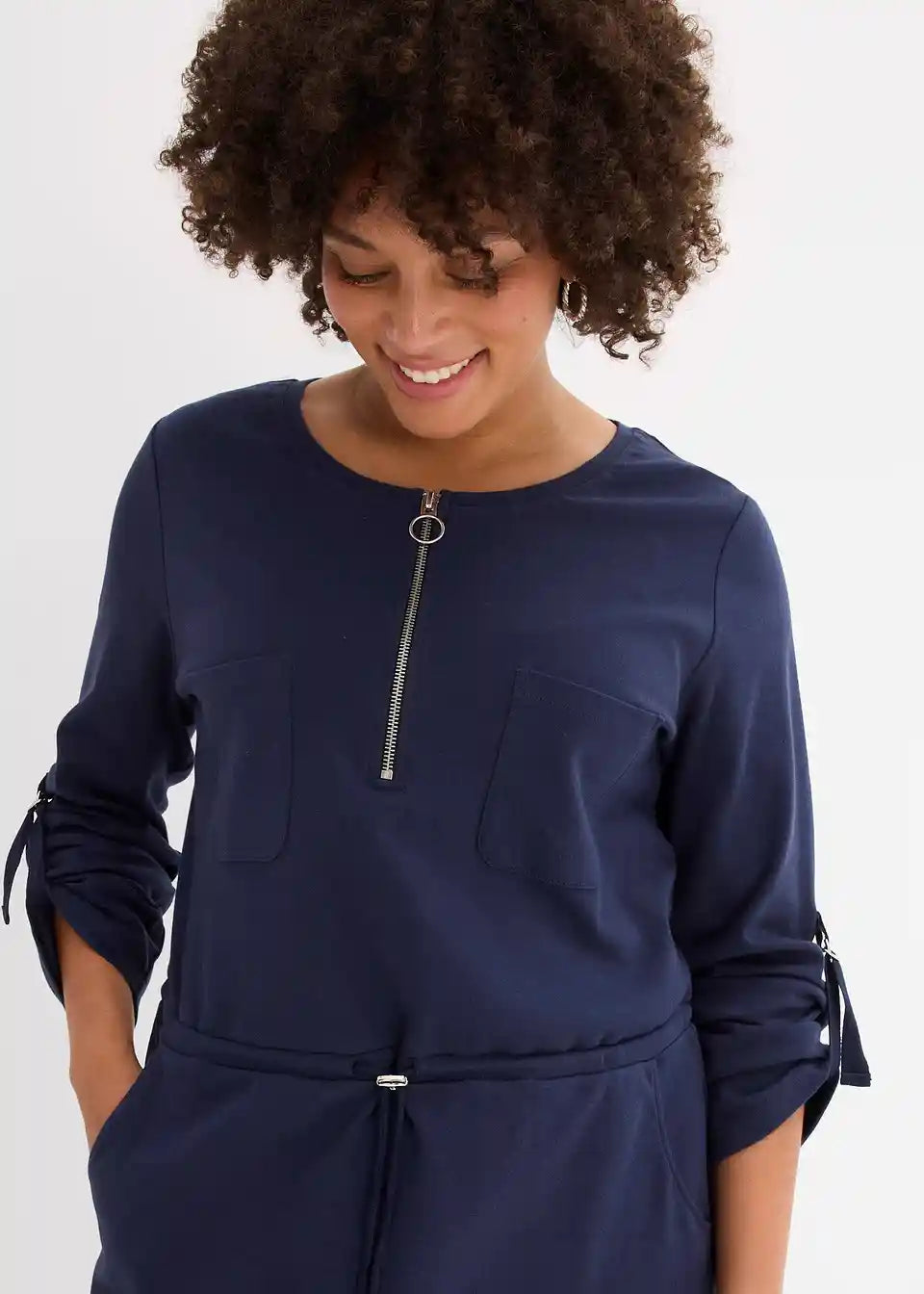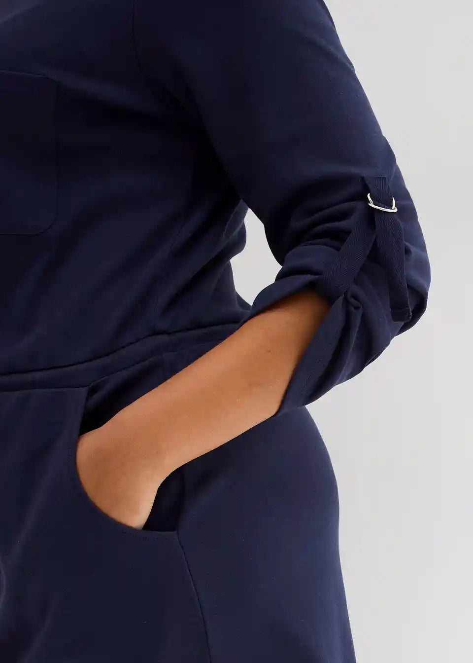 Pamučna haljina-košulja koja naglašava struk s prilagodljivom dužinom rukava i džepovima