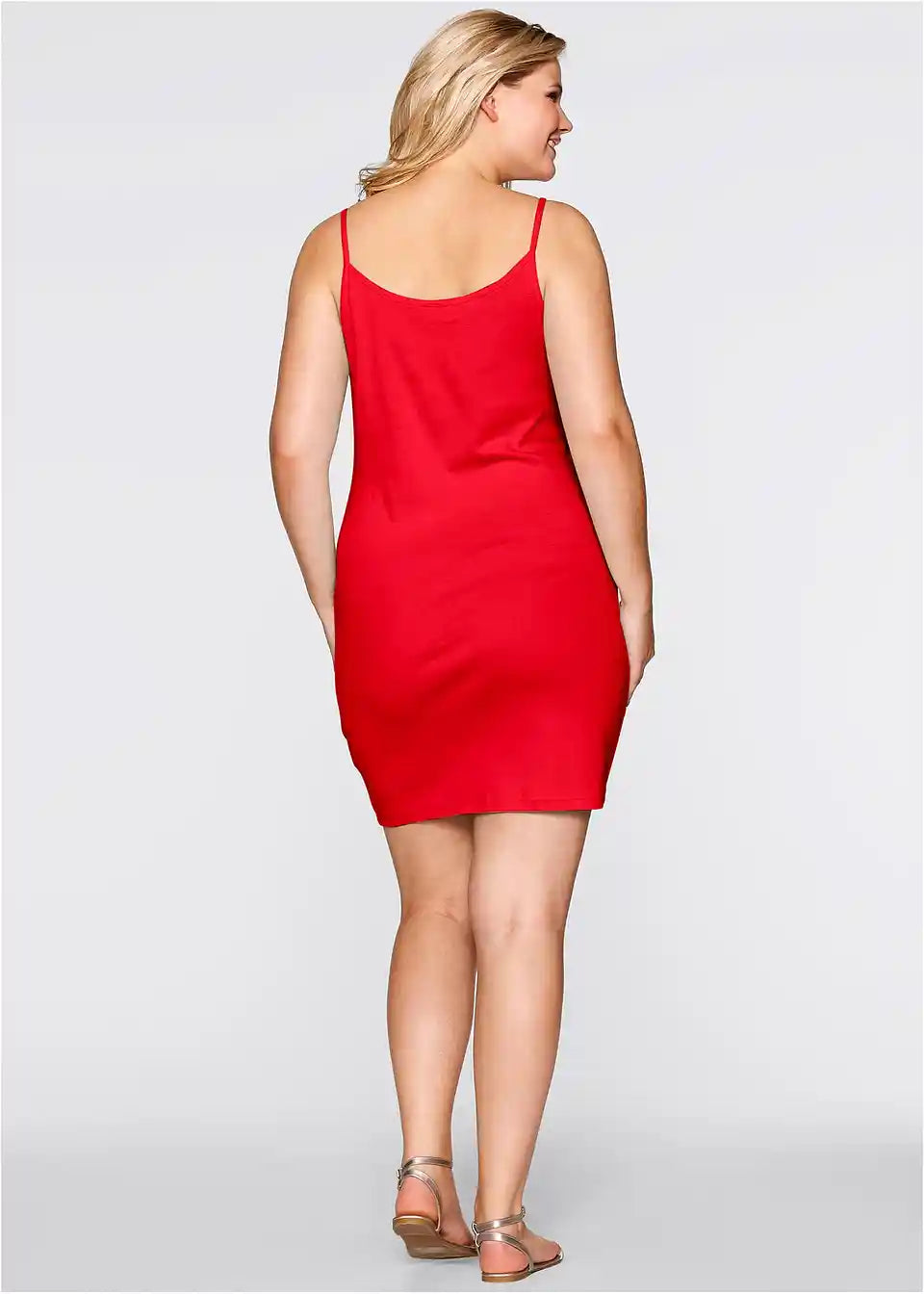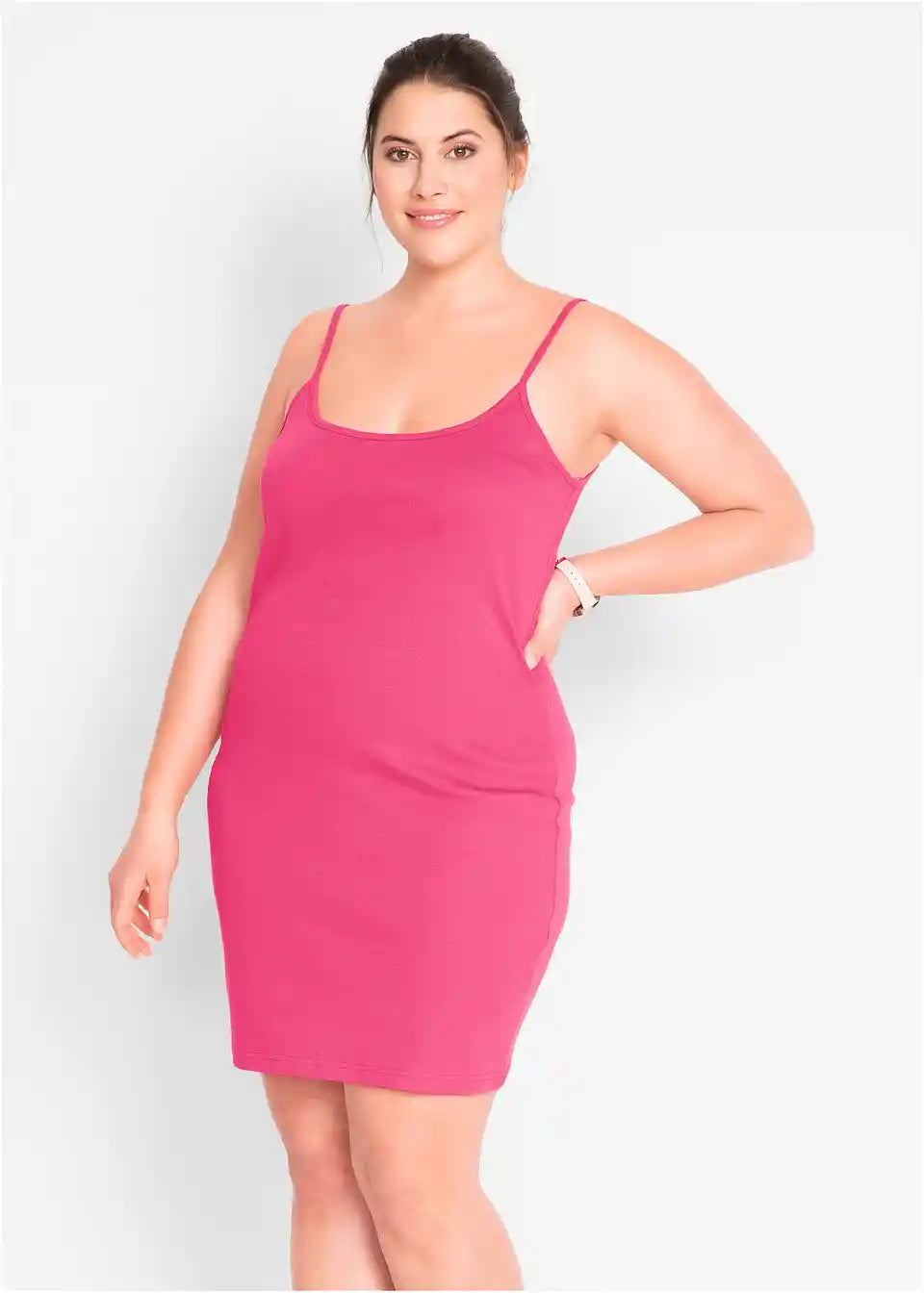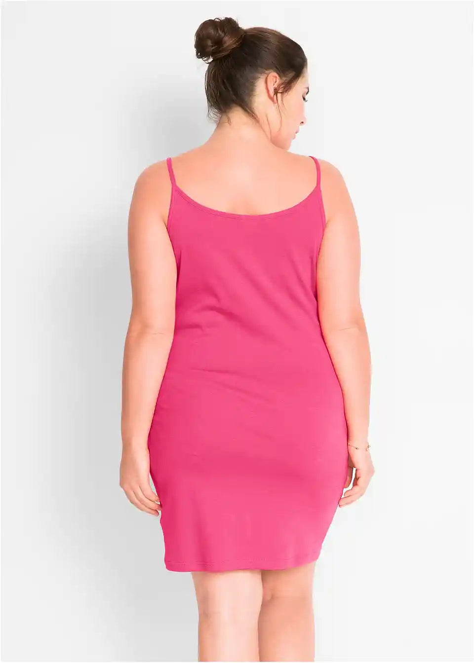 Ovaj atraktivni set sastoji se od dva modela u različitim bojama. Prilagođene haljine u pakiranju od dva komada predstavljaju privlačne osnove za brojne kombinacije. U vrućim danima savršeno se kombiniraju s prozračnom bluzom za ljetni izgled. Kada postane svježije, nosite ih s pletenim kardiganom. Haljine iz bpc kolekcije sa špageti naramenicama i okruglim izrezom također se mogu nositi kao donje haljine ispod kukičanih haljina i drugih poluprozirnih modela.