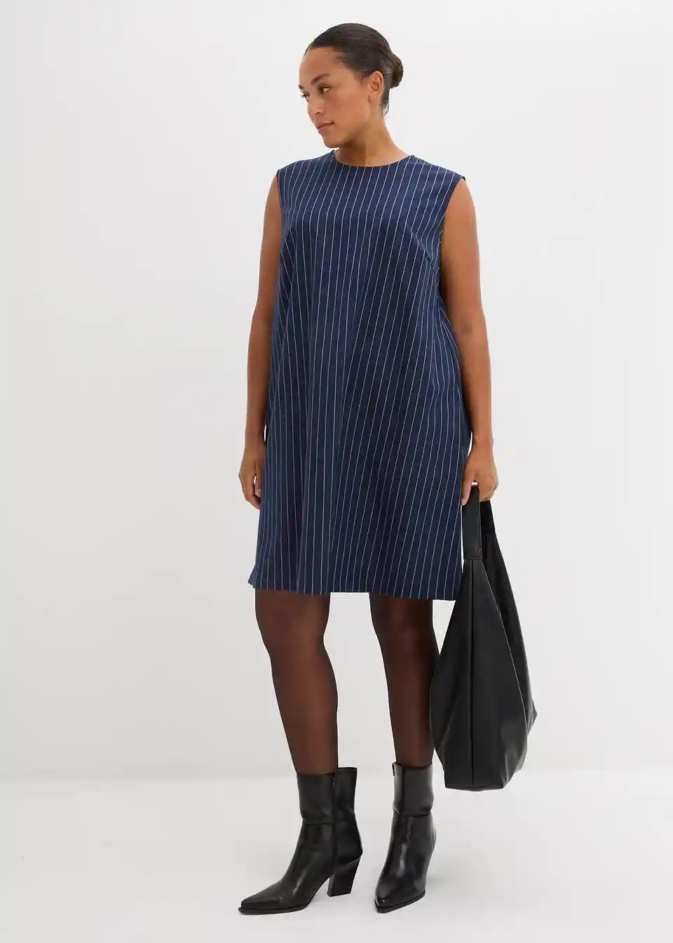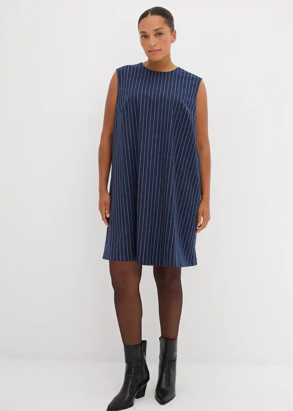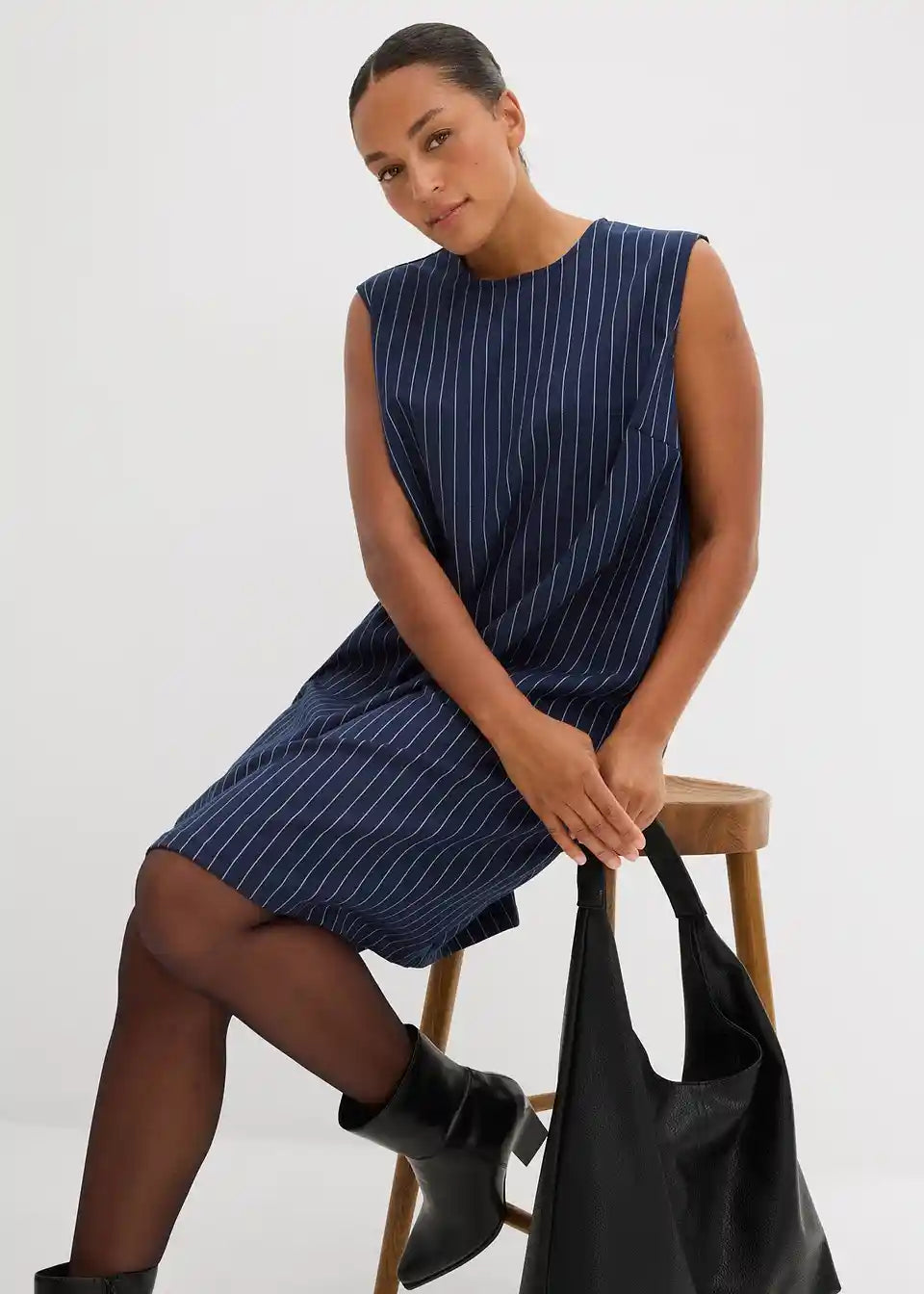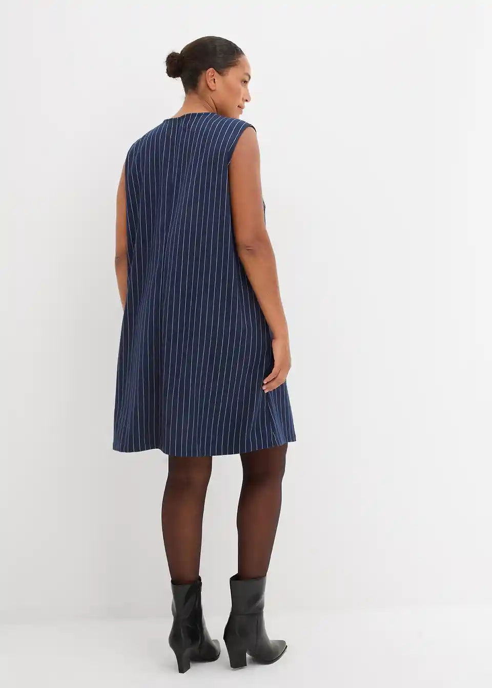 Bezrukavna haljina s prugama s poprsnim ušitcima i patentnim zatvaračem na leđima