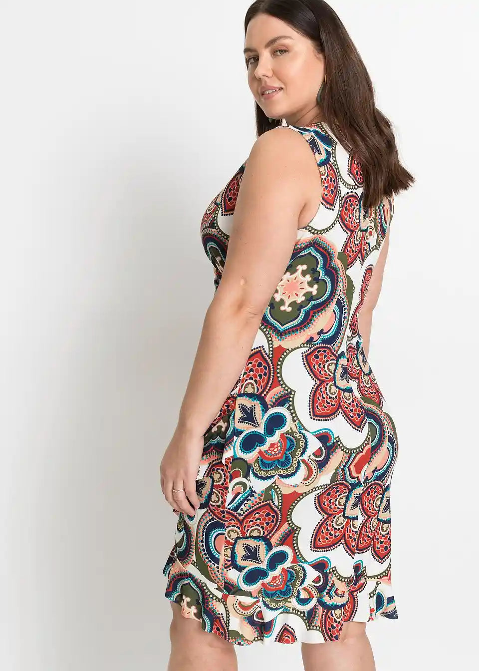 Razigrana ljetna haljina s dubokim dekolteom i šarenim uzorkom