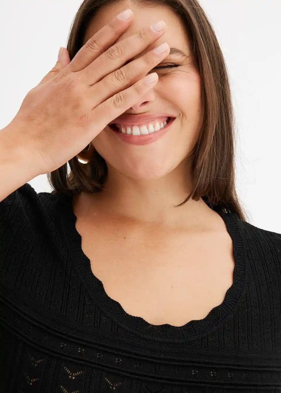 Moderna haljina by BODYFLIRT. Pletena haljina izrađena je s elegantnim ajour uzorkom. Duljina u veličini 36/38 cca 94 cm.