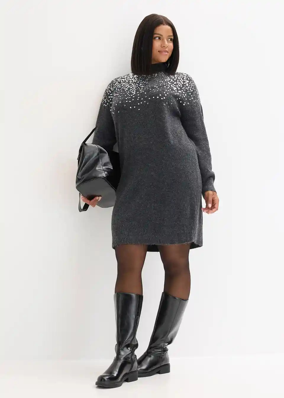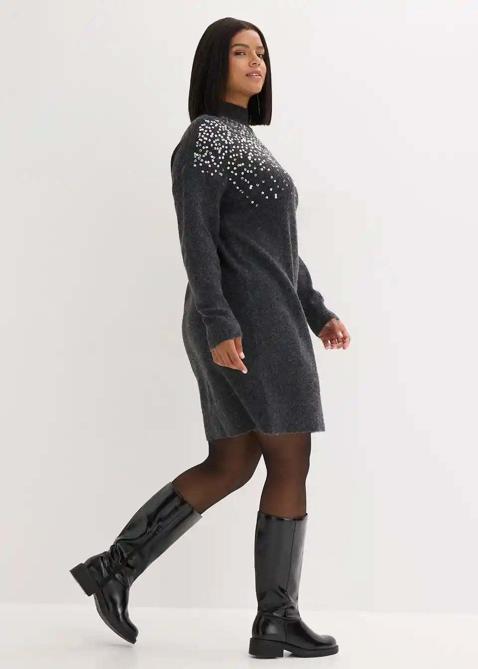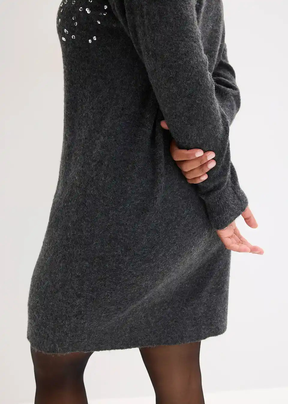 kratka pletena haljina s dekorativnom aplikacijom od šljokica sprijeda