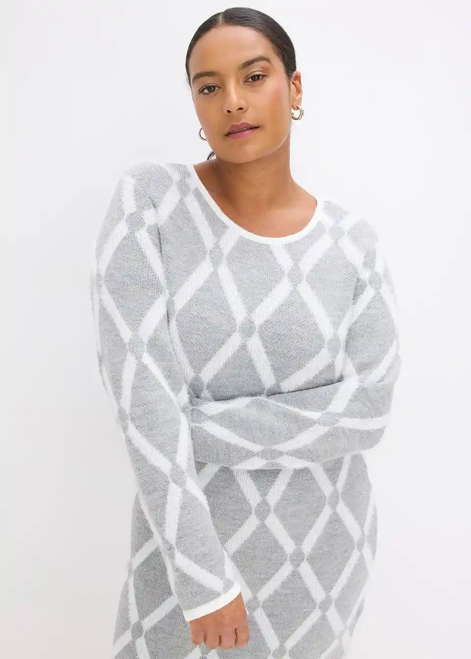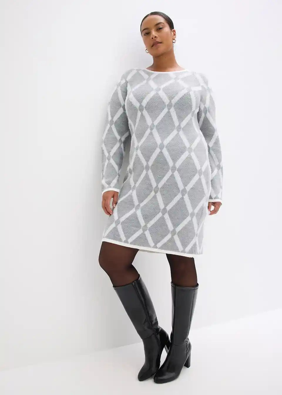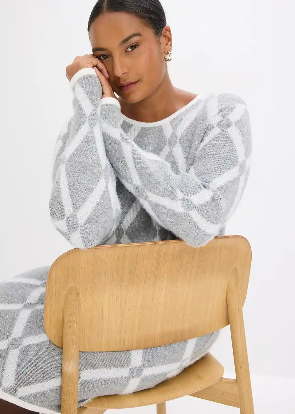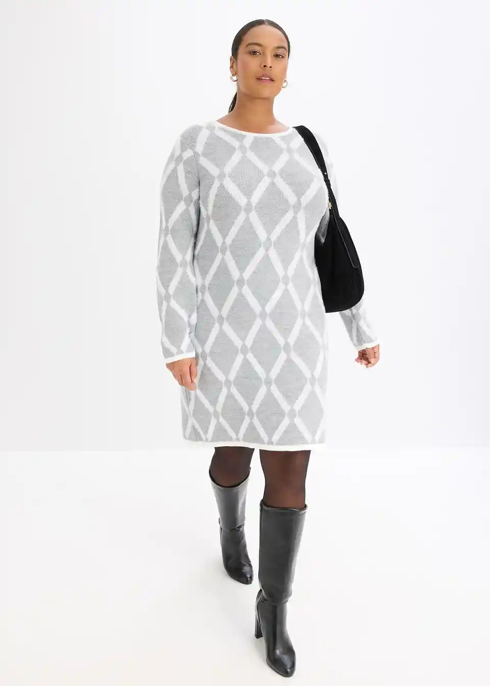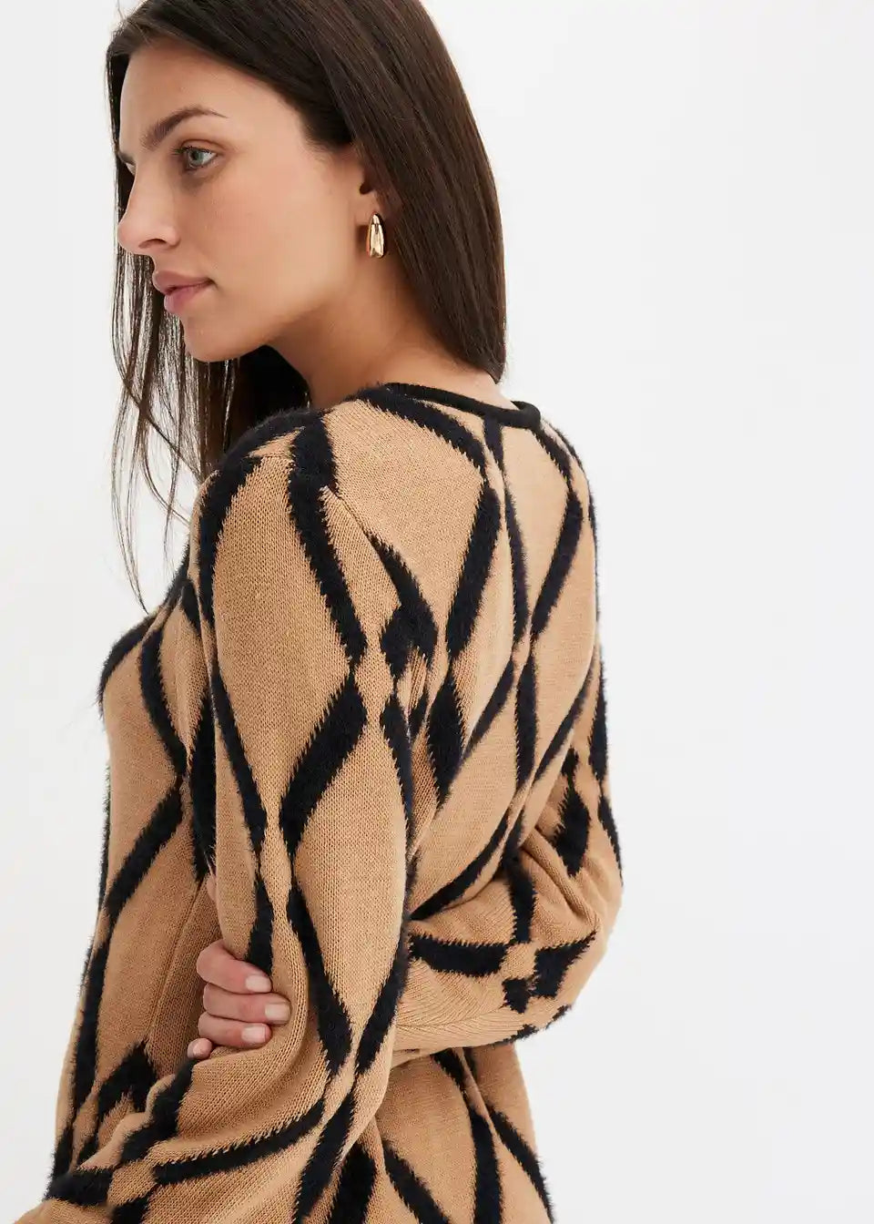 šik pleteni haljina s dijamantnim uzorkom od perjanaste pređe