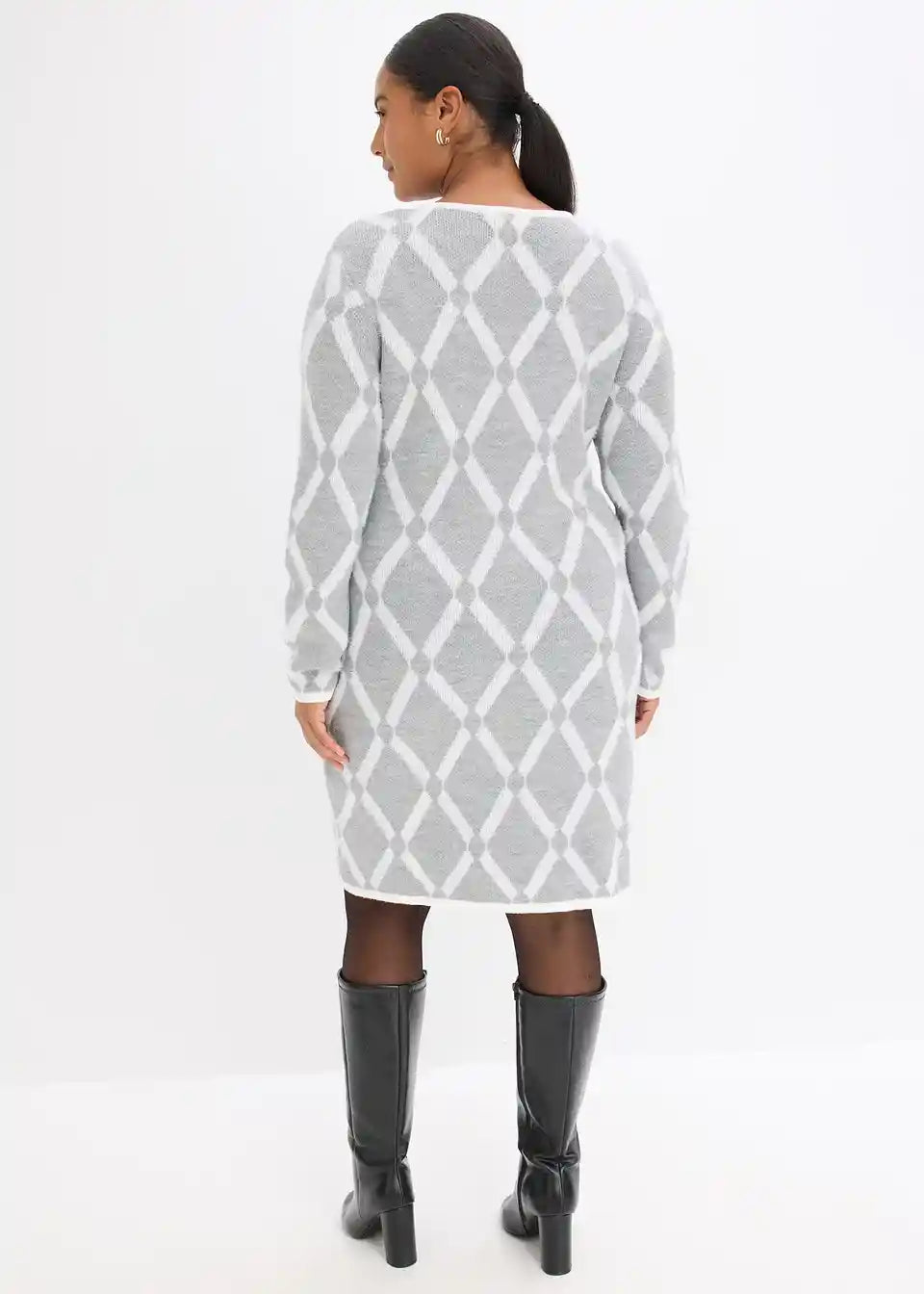 Pletena haljina s uzorkom romba od pahuljastih vlakna