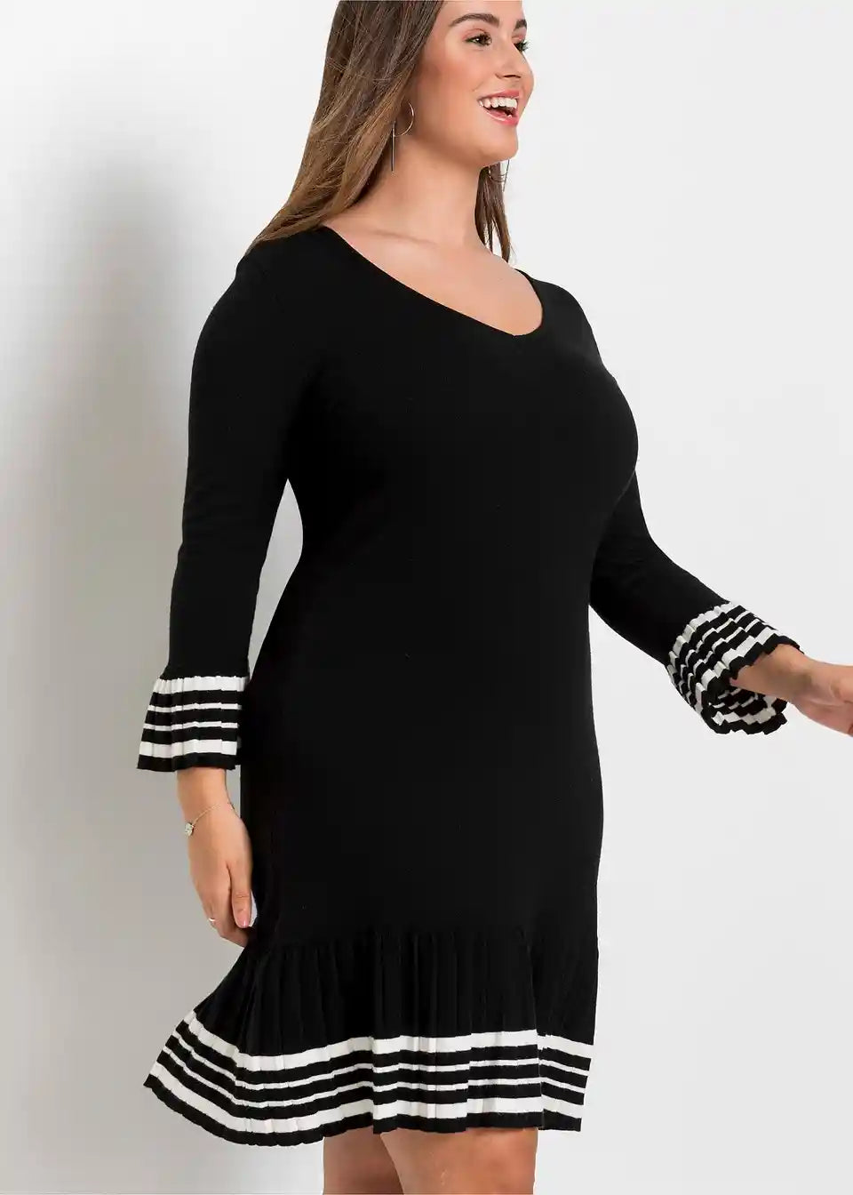 Moderna haljina s plisiranim donjim dijelom i dizajnom pruga